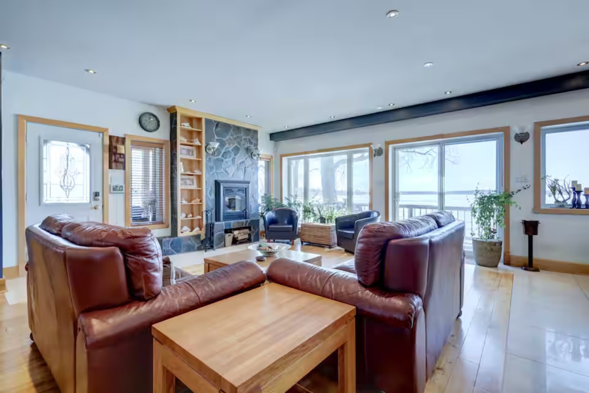Escápate a nuestro sereno refugio en Airbnb con spa privado, piscina e impresionantes vistas al atardecer. Descubre la elegancia moderna, una cocina totalmente equipada y una acogedora cama tamaño king en el dormitorio principal. Mantente conectado con internet rápido y disfruta de un televisor en cada habitación. Trabaja cómodamente en el espacio de trabajo dedicado. Relájate en la sala de estar adornada con plantas vibrantes, incluido un hermoso árbol de Scheflera. Con la cercana playa de Oka y el fácil acceso a Montreal, experimenta la tranquilidad, la aventura y la belleza de la naturaleza.