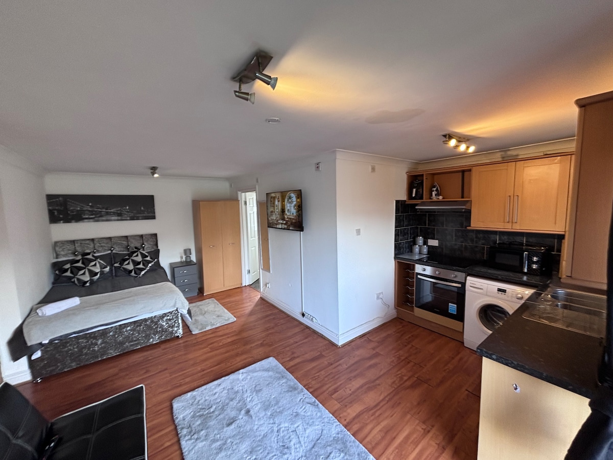 Apartamento recién reformado, espacioso y cómodo. Consta de un gran y cómodo salón, con Sky TV y banda ancha. Cocina moderna con todos los servicios y comodidades del hogar. Baño luminoso con ducha eléctrica a ras de suelo y mucho espacio de almacenamiento. Dormitorio doble de buen tamaño con armario triple, un gran dormitorio individual/oficina con puerta que conduce a la zona del patio privado. A menos de 5 minutos a pie del supermercado local, 3 pubs, Costa, Kings Mill Hospital y el lago. A 5 minutos en coche del centro de Mansfield.
