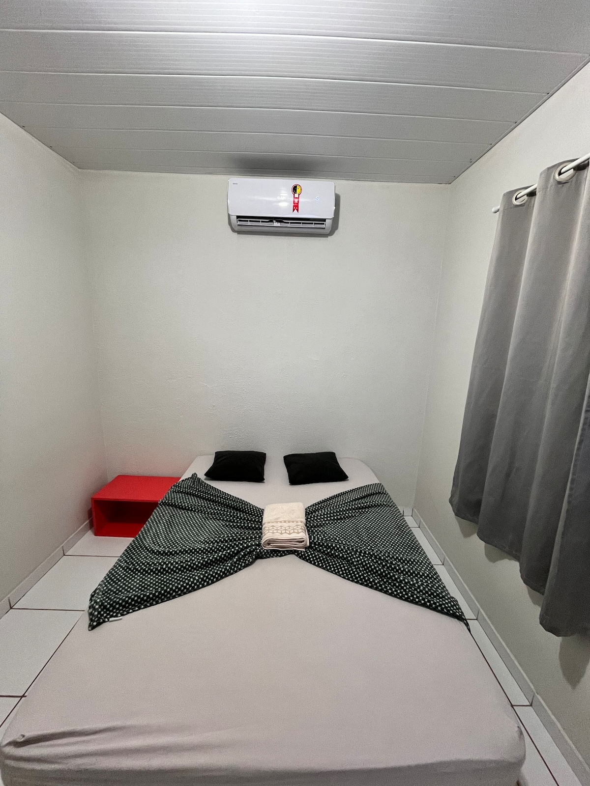 Disfruta de la comodidad en este lugar tranquilo y bien ubicado. Novinho, en el centro... A dos cuadras de la estación de autobuses y del punto de taxis. Cama casal queem, con espacio para un colchón individual adicional.