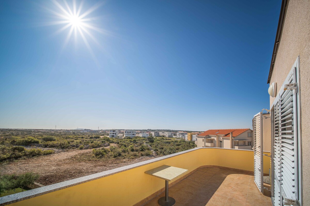 This apartment has a great location - only 2,5km Zrće beach! it is close to the city centre as well as the central bus station! This apartment is in a family house but it has its own entrance. It has 2 bedrooms with double bed. The apartment is equipped with WiFi. You can prepare your own meals as this apartment has its own kitchen and a dining area. There is also big terrace with seaview!