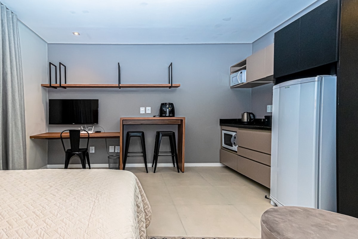 Estudio nuevo y moderno en el piso 13, diseñado para ofrecer comodidad y conveniencia. Decoración minimalista y acogedora, es ideal para parejas, viajes de negocios o de placer. La ubicación es un diferencial: en el centro de Novo Hamburgo, cerca de FENAC, hipermercado Bourbon, tiendas, tren y estación de autobuses. A solo 40 minutos de Porto Alegre y a 1 hora y 30 minutos de Gramado. Aquí encontrarás todo lo que necesitas para una estadía completa. ¡Te damos la bienvenida!✨