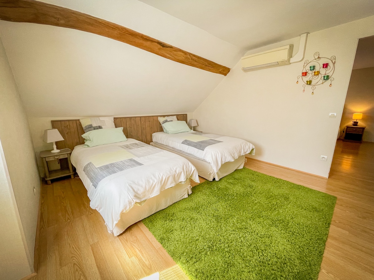 Nuestra casa de campo "Le Relais Viennois", totalmente climatizada, le ofrece una vista panorámica del Loira y el Castillo Real. Situado en la planta baja, cuenta con una gran sala de estar con cocina abierta equipada, una sala de estar de estilo industrial, dos dormitorios con aire acondicionado luminosos y tranquilos, dos baños y aseos separados. En el salón hay un gran sofá convertible en cama de 160 x 200. Posibilidad de pedir una cesta de desayuno, póngase en contacto con nosotros.