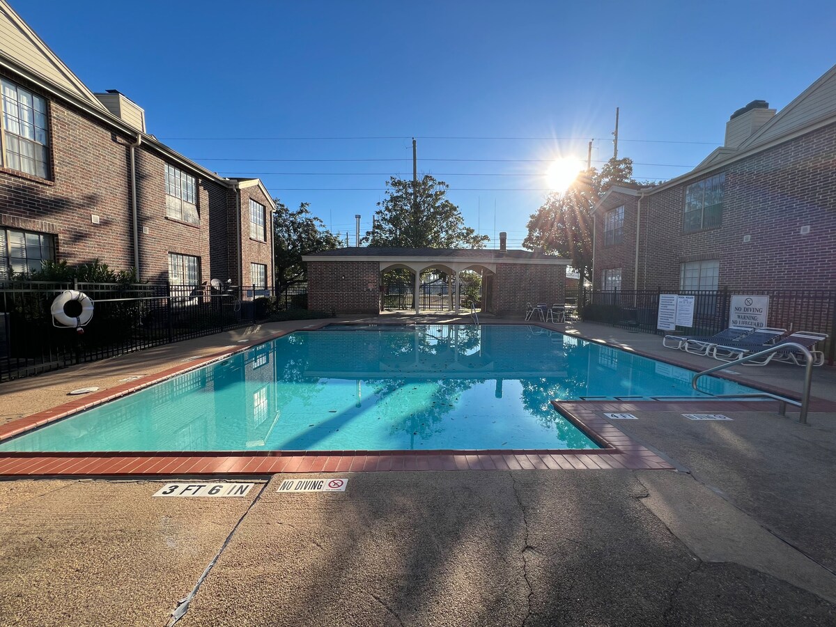 Descansa tranquilamente en este lujoso apartamento de 1 dormitorio y 1 baño, con patio junto a la piscina, ubicado en el complejo de apartamentos Domain at Kirby. Si quieres reservar cerca del estadio NRG, a poca distancia a pie del RODEO, ¡este es el lugar perfecto! Estamos a 15 minutos a pie del parque NRG y a 7 minutos en coche del Centro Médico de Texas. Estamos ubicados cerca de muchos destinos adicionales muy queridos en Houston, incluido el distrito de los museos, el zoológico de Houston y una gran cantidad de opciones gastronómicas.