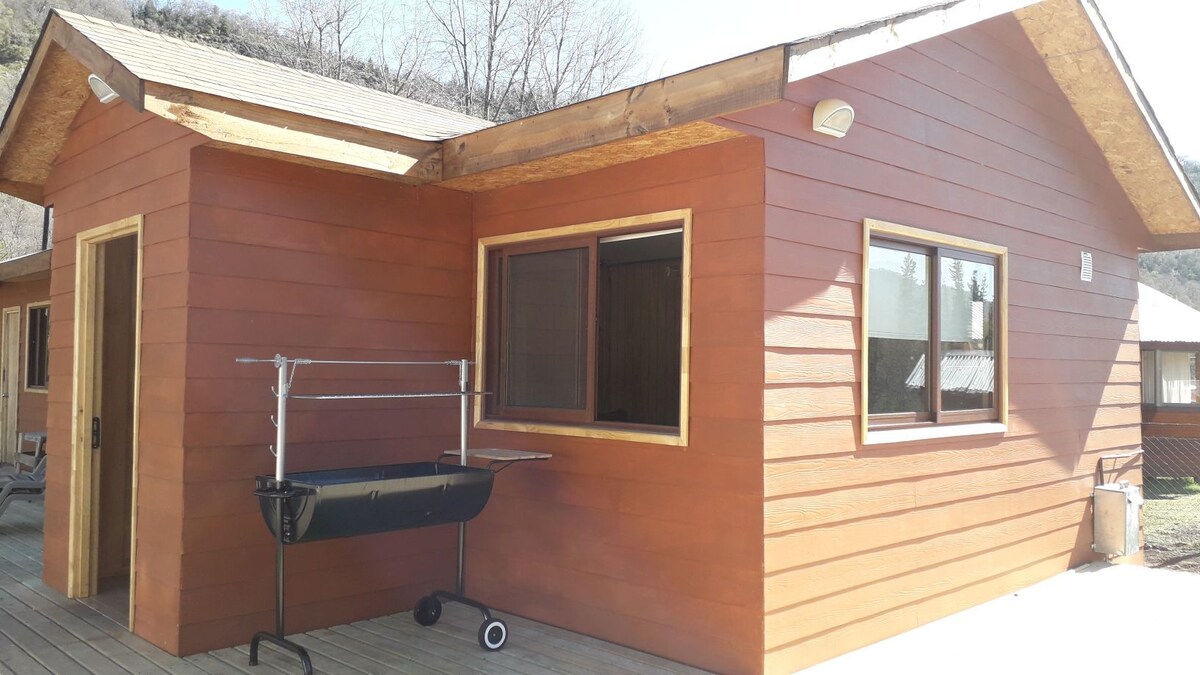 Cabaña en sector La Invernada KM 58. Full equipada. 1 cama de 2 plazas, 2 camas de 1.5 plazas y un camarote de 1 plaza. Parrilla en patio, horno + microondas, toallas, sábanas, tina caliente (a costo adicional) terraza con estero y el rio Renegado parte posterior de la parcela.Lavadora/secadora con costo adicional. Está lista para disfrutar la tranquilidad de la naturaleza que le rodea con una elegancia y comodidad única. Tenemos dos cabañas unidas por el techo del garage. Usen 4x4 por nieve
