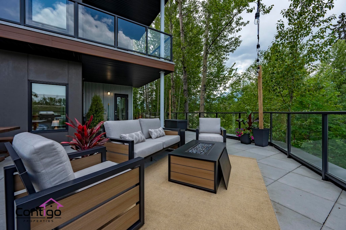 ¡Moderna casa pequeña, rodeada de montañas en las Rocosas canadienses! Sumérgete en el jacuzzi, relájate en la sauna de la casa del árbol o en la espaciosa terraza. ️ Perfectamente ubicado para la aventura: A 6 minutos del centro de Golden. A 20 minutos del centro vacacional de montaña Kicking Horse. Fácil acceso a los parques Yoho, Glacier, Banff y Bugaboo. Cama tamaño queen y sofá cama. Cocina moderna con todo lo necesario para cocinar. Baño completo con ducha. Wifi de alta velocidad. Jacuzzi compartido y sauna en la casa del árbol. Plataforma privada con barbacoa.