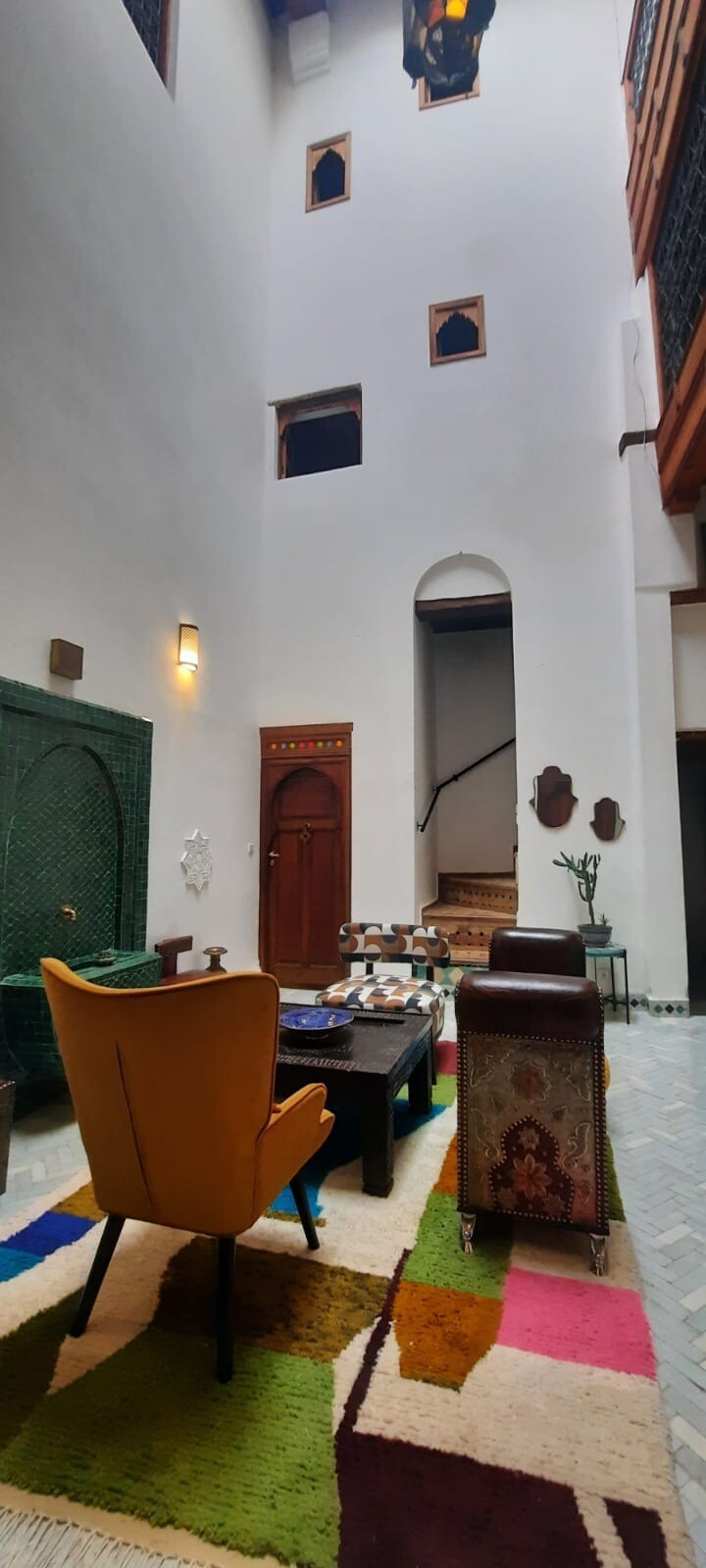Sumérgete en el Fez del siglo XIX con una estancia en el Palais el Mokri. Dirigido por la misma familia que lo construyó hace 150 años, el Palais el Mokri te trae el ambiente de la medina de Fez de una manera espaciosa y única. En todas partes del palacio puedes disfrutar del arte de la artesanía marroquí, ya sea mosaicos de Fez, techos de madera tallados a mano, estuco único familiar, hermosas escaleras y vidrio Murano. Nuestra familia se asegurará de que se sienta cómodo y le ayudará a disfrutar de Fez de la mejor manera posible.