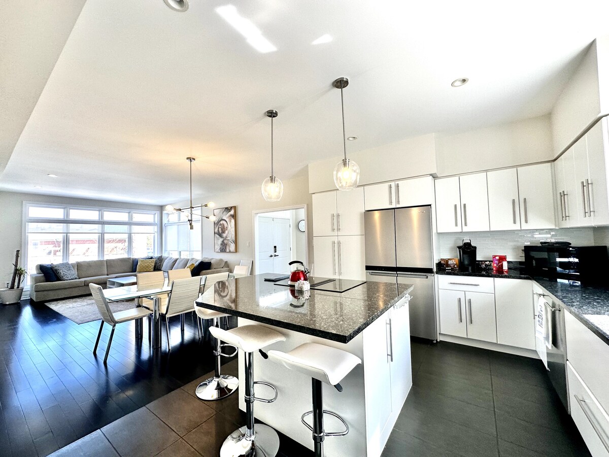 ¡Te damos la bienvenida a tu acogedor apartamento en el sótano de Oakville! De nueva construcción, este apartamento de 2 dormitorios cuenta con una sala de estar de concepto abierto que fluye hacia la cocina totalmente equipada, ofreciendo un espacio acogedor para relajarse junto con el área del patio trasero. Los huéspedes tienen acceso privado a través de una entrada independiente y una zona de trabajo independiente. Frente al estanque, situado en un barrio tranquilo muy cerca de restaurantes y tiendas de comestibles. A 10-15 minutos de la estación de tren de Oakville. A 25-30 minutos del aeropuerto YYZ.