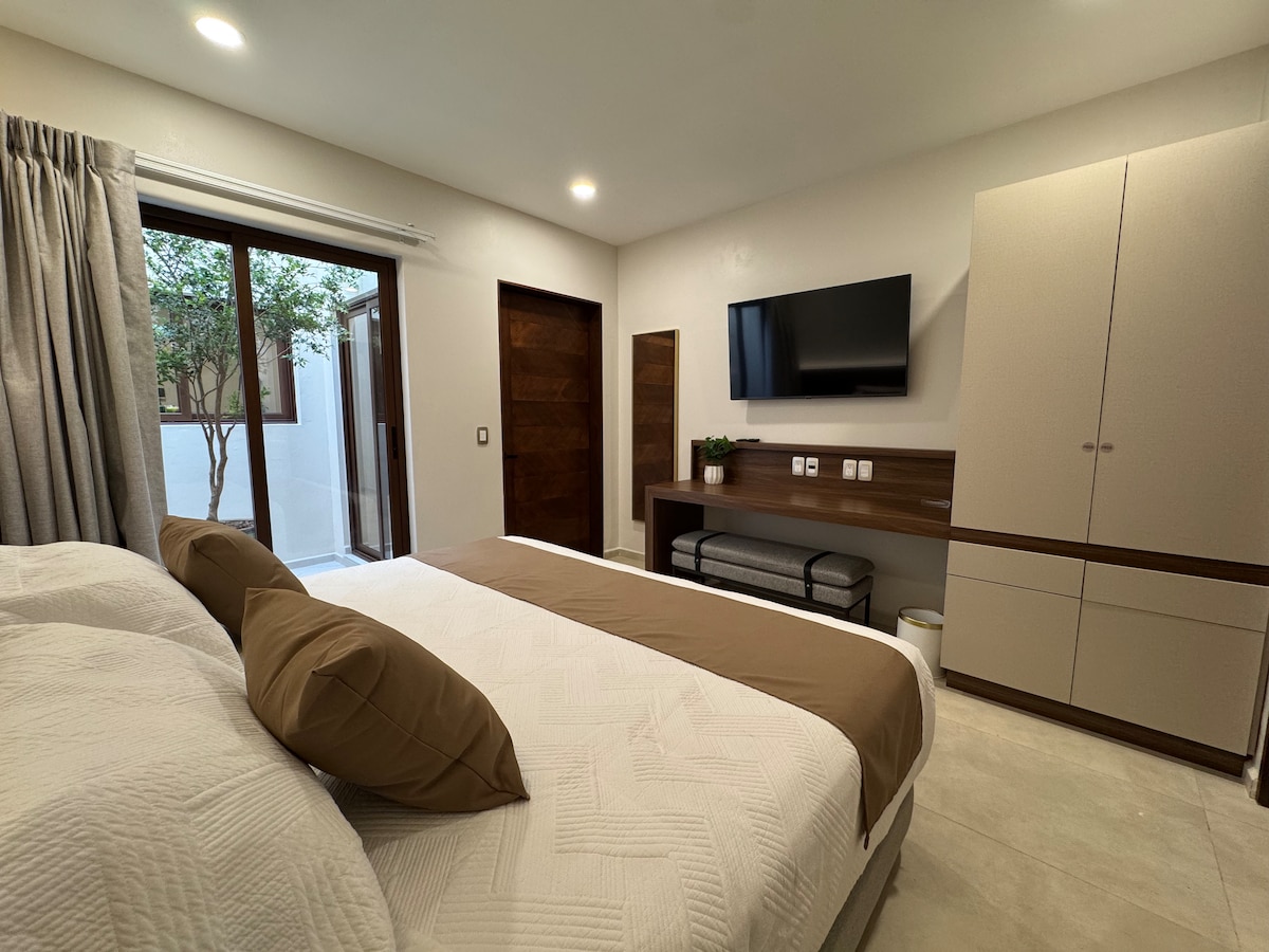 Experience the charm of MARGARITA, a private 34 m2 flat in our boutique apartment complex. This suite offers a bedroom, bathroom, and a dining room with a kitchen. Enjoy entertainment with two 43-inch 4K TV screens and stay connected with Wi-Fi. Admire the view from two large windows overlooking a lively plaza. Located in Oaxaca's city centre, MARGARITA is within walking distance of the zocalo, andador turístico, and other attractions.