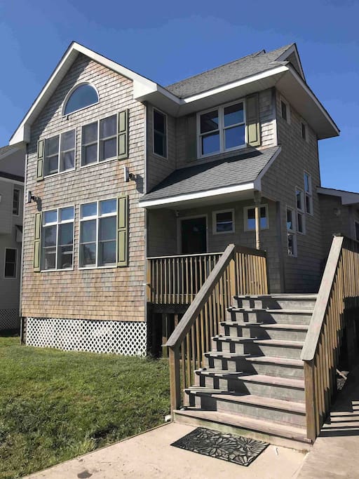 Great for friends or a family. House includes 4 bedrooms (3 with balconies), 1 and 1/2 bathrooms , kitchen, large deck with new outdoor furniture and BBQ, outdoor shower, large living room with dining area, wall unit air conditioners in each room. Bay views from upstairs bedroom balconies. House includes satellite tv, wi-fi, bikes, beach chairs, wagon, many toiletries, coolers, beach games and all sheets and linens (but no towels).