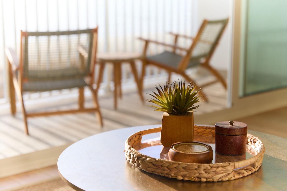 🥂 Complimentary bottle of champagne on arrival, endless ocean views, private balcony, golden sunrises, rooftop heated pool, and direct beach access await at this romantic retreat. Celebrate your love from the 15th floor of Love Above the Waves - a romantic retreat for anniversaries, engagements, birthdays and peaceful escapes for two. Inside, a warm, inviting interior sets the mood—dine out nearby or enjoy a candlelit dinner on the balcony, often with dolphins playing in the waves.