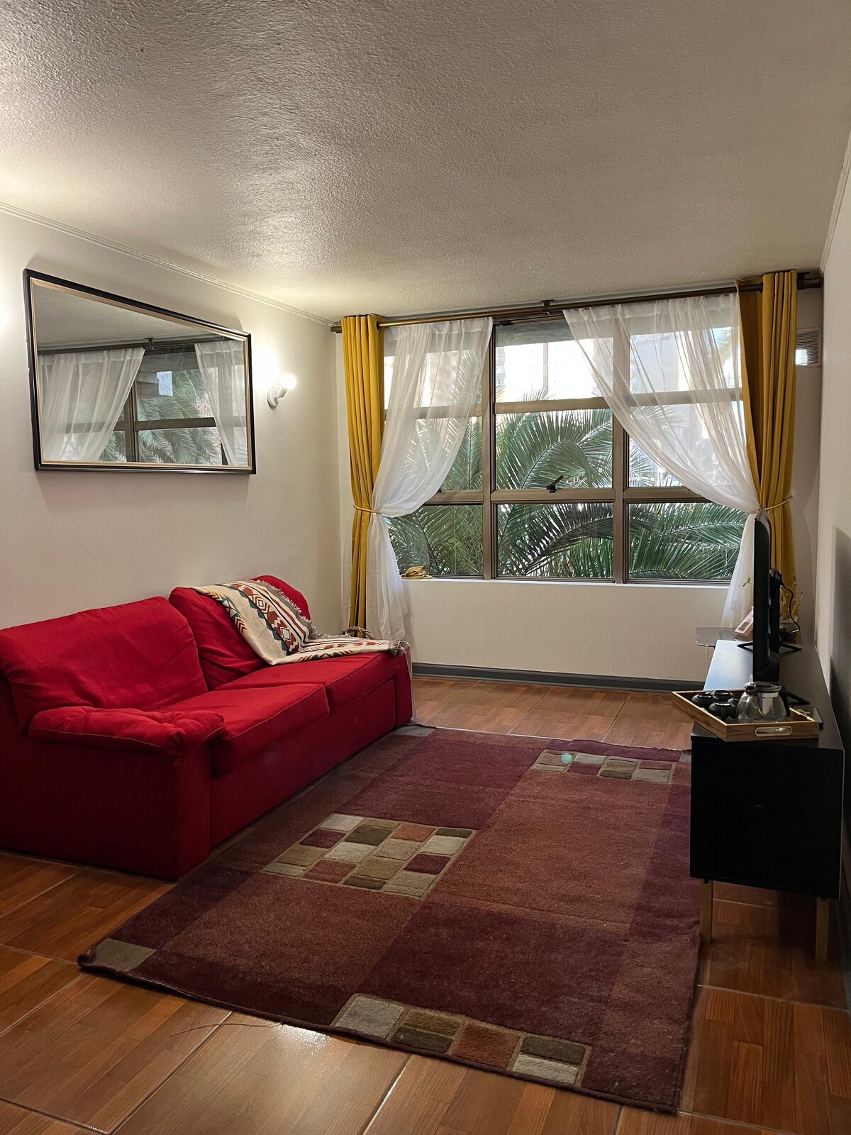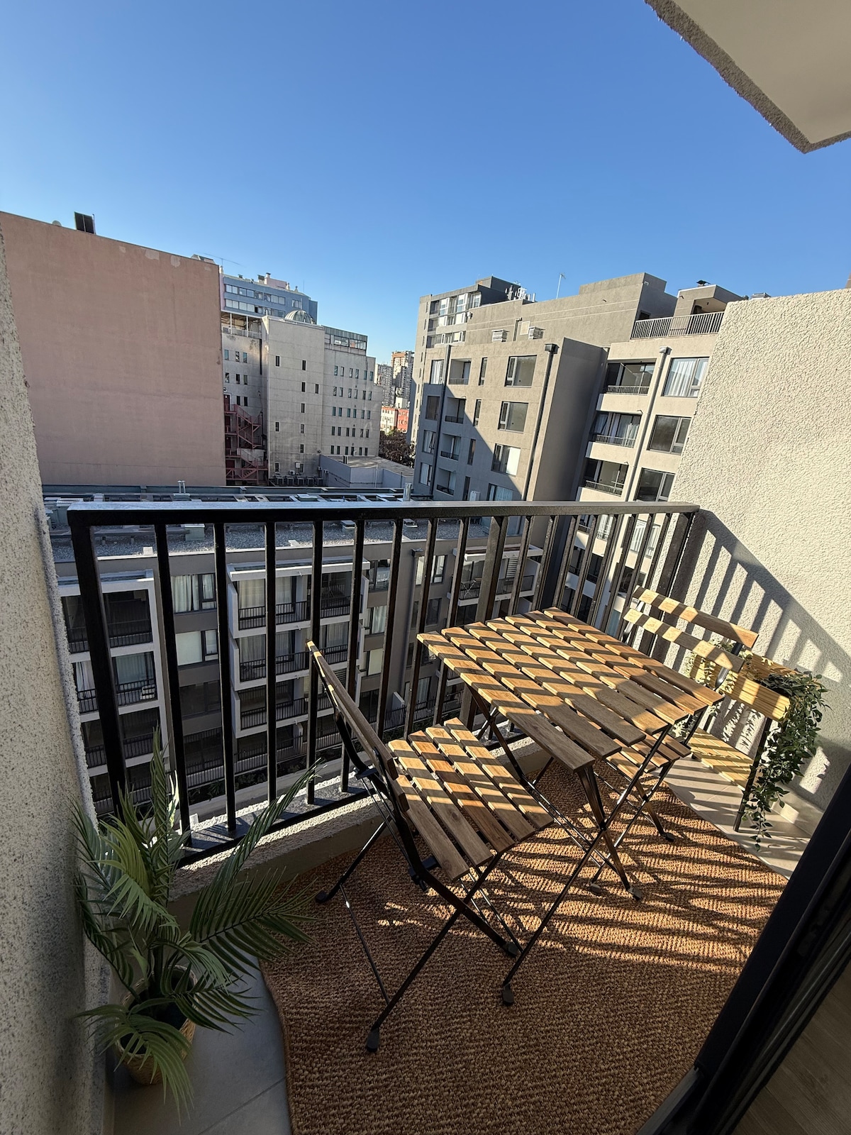 Moderno y acogedor departamento con aire acondicionado en el corazón de Santiago. A pasos del metro y del Centro Histórico, rodeado de museos, mercados y restaurantes. Cama king, cocina equipada, balcón y wifi rápido, ideal para viajes o estadías largas. Edificio seguro con conserje 24/7. Atención personalizada, check-in flexible y recomendaciones locales para que disfrutes la ciudad como un residente, con comodidad y tranquilidad.