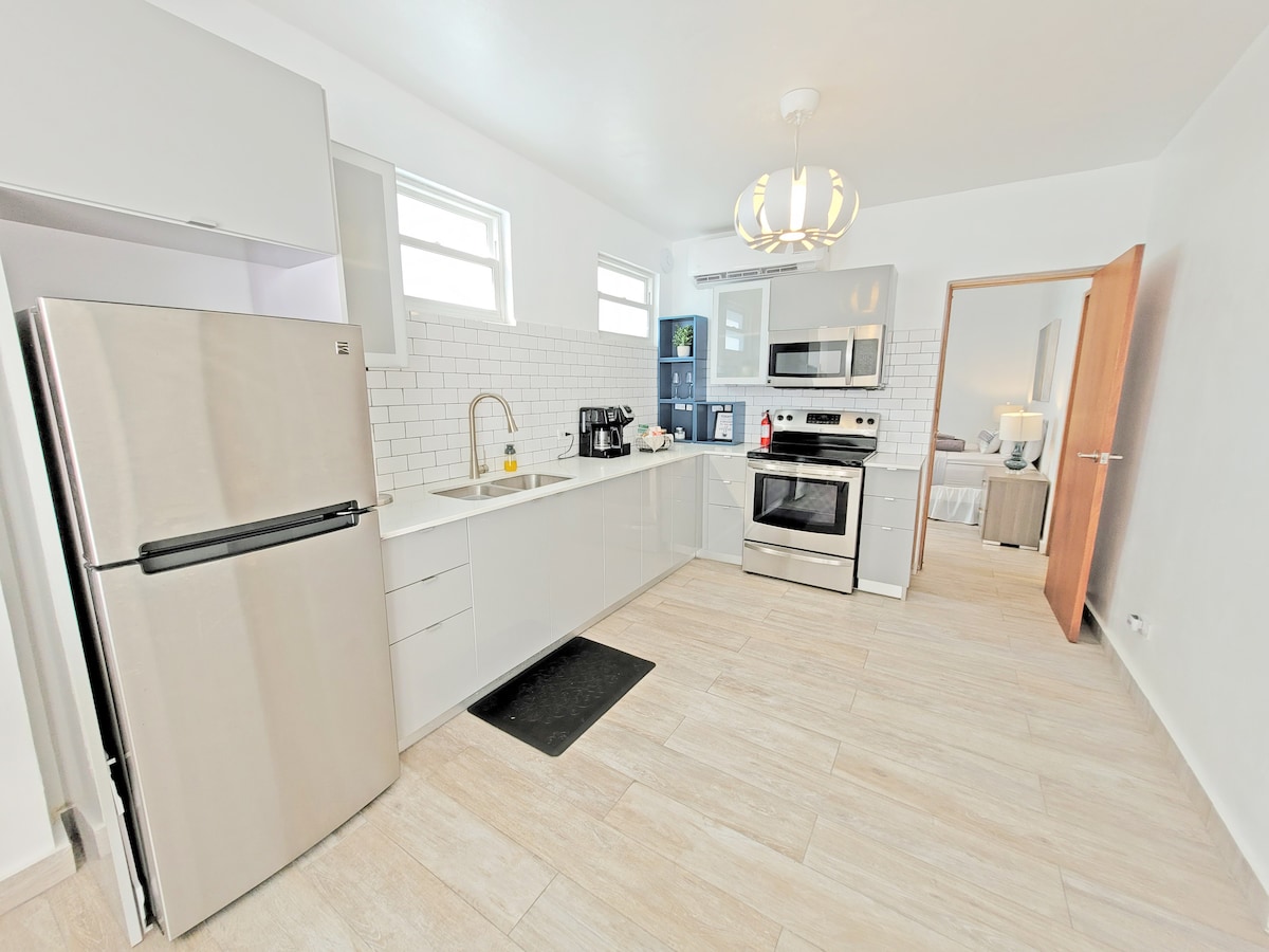 Disfruta de una estancia acogedora en nuestra casa de 1 dormitorio renovada, a solo 5 minutos a pie de Ocean Park Beach y a media manzana de la vibrante Calle Loíza. Disfruta de aparcamiento cerrado gratuito, una cocina moderna, lavadora-secadora, aire acondicionado, ventiladores de techo y un espacio de trabajo dedicado. Con dos televisores, excelente internet y artículos esenciales de playa incluidos, tendrás todo lo que necesitas. Sumérgete en la cultura local y explora cómodamente las atracciones cercanas. Si no quieres alquilar un coche, puedes ir andando o usar Uber.