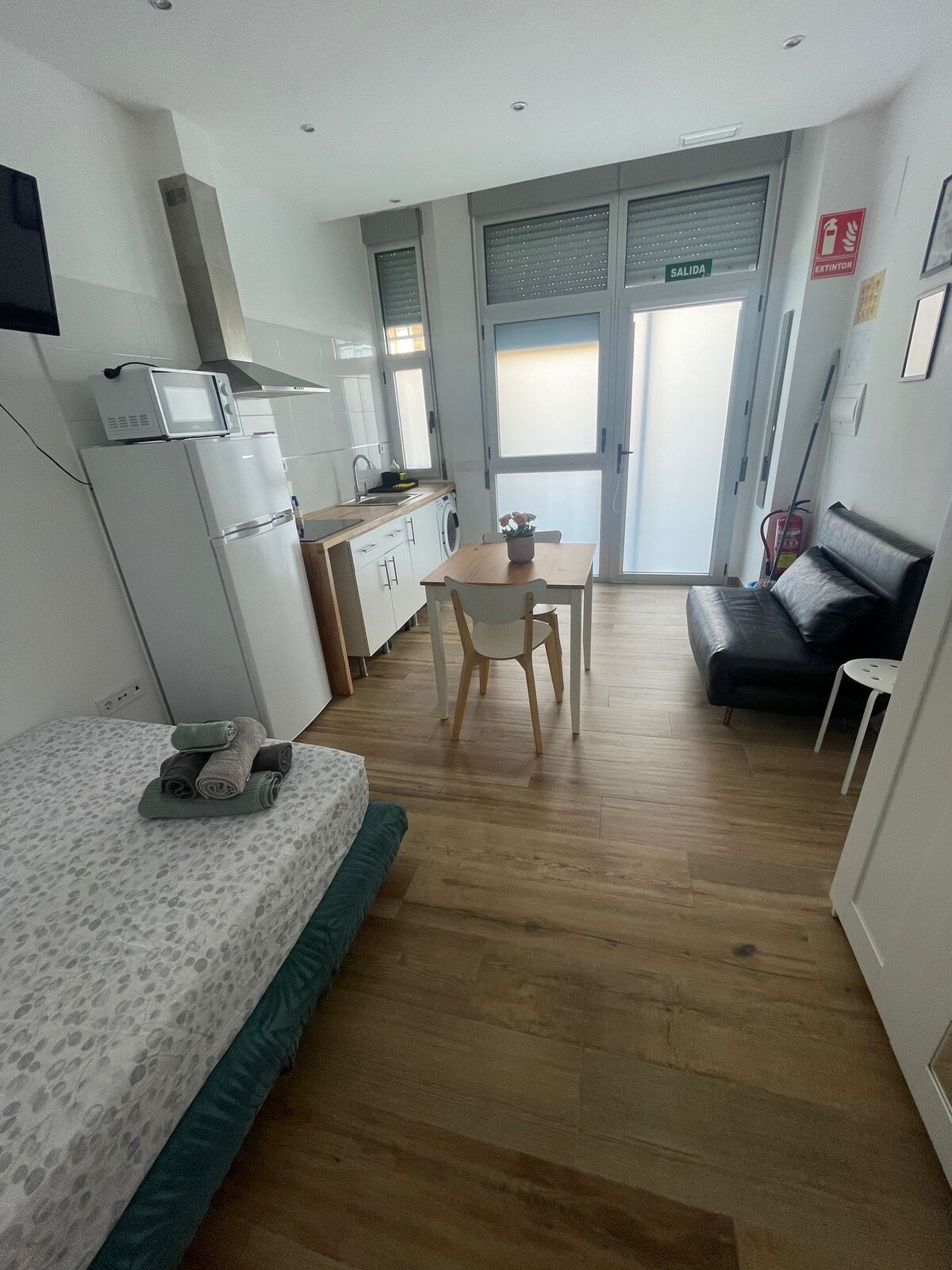 Acogedor estudio ubicado en la planta baja de un bloque de pisos y tiene entrada independiente directamente a la calle en una zona tranquila de Valencia. Reforma de 2024, mucha luz natural y diseño moderno. Equipado con todo lo necesario para una estancia cómoda. A 5 min andando de metro, autobuses y del distrito empresarial con exposiciones, cafés y restaurantes. Ideal para una persona o pareja.