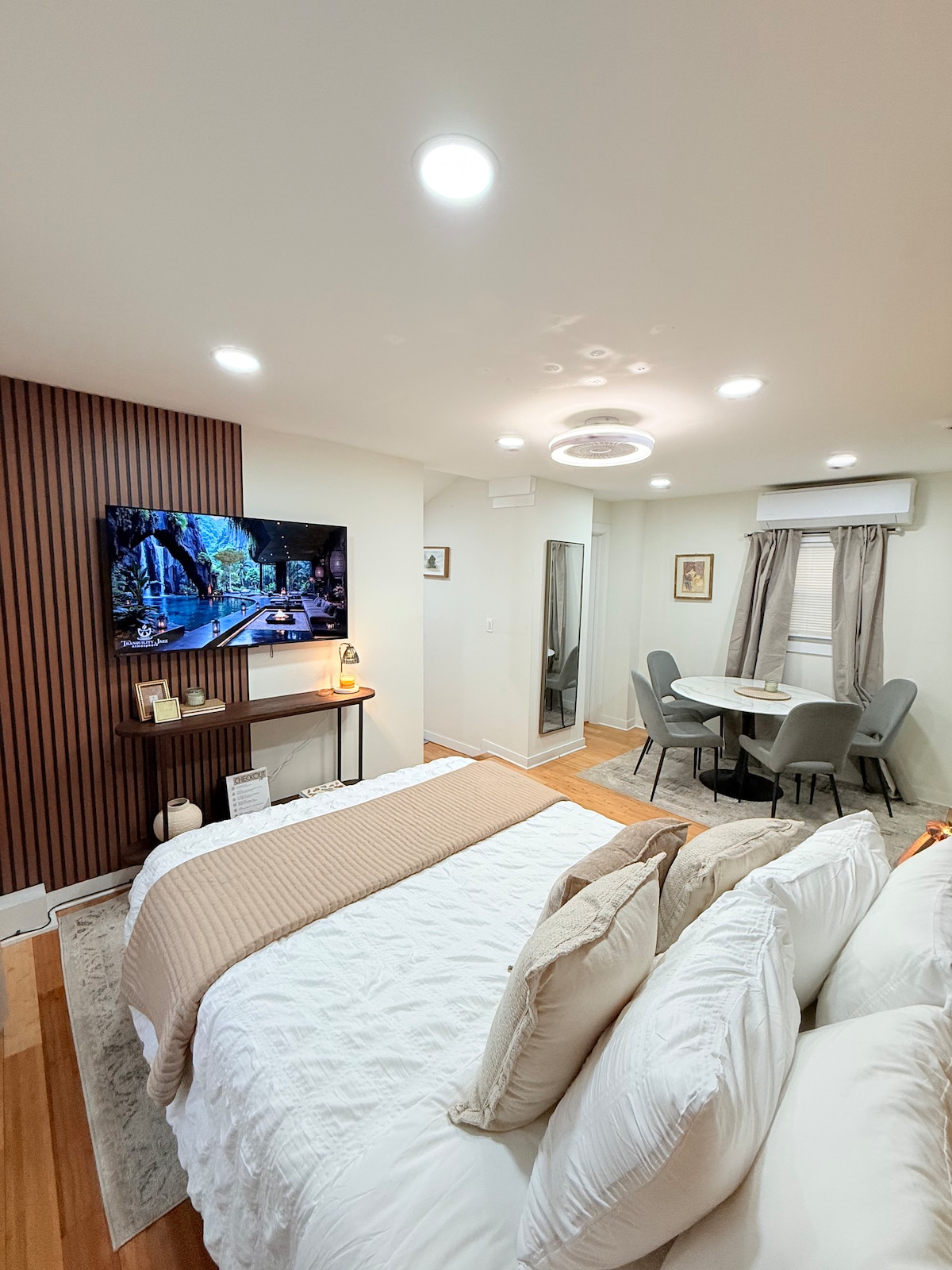 Experience the elegance of a Romantic and Exotic home away from home while staying in this luxurious studio apartment. This private and cozy apartment is beautifully decorated and perfect for a quick short stay or a week long staycation. This brand new private and exclusive studio apartment come with a comfy queen size bed, private bathroom, kitchenette and dedicated work space. Within minutes from the UBS Arena, JFK airport, NYC Times Square and Roosevelt Field Mall. Tons of bars/restaurants.