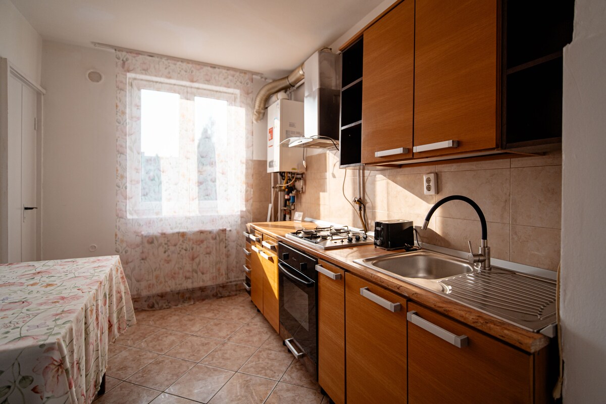 Apartamento de un dormitorio donde puedes disfrutar de un silencio completo, lejos del tráfico de automóviles, fresco en verano, calefacción de gas, baño con cabina de ducha, agua caliente, cocina equipada con todos los servicios públicos, en la casa el café de la mañana, balcón con vistas al jardín, para fumadores. Colchón y ropa de cama para un niño (bajo petición) Se encuentra en el centro de Sighetu Marmatiei, a 200 m del Monumento a las Víctimas del Comunismo, cafeterías, restaurantes y supermercados están cerca.
