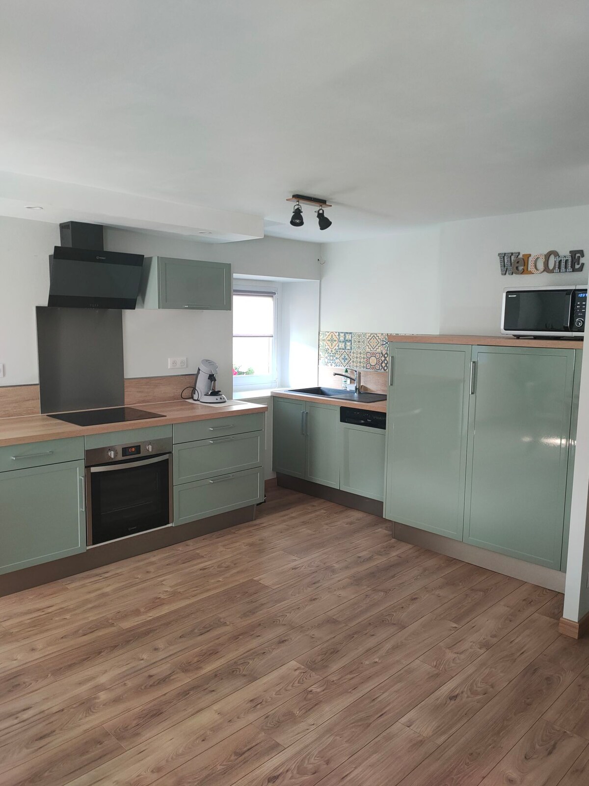Amplio apartamento ubicado en la planta baja de nuestra casa. Ideal para 4 a 5 personas. 1 habitación acogedora con una cama de matrimonio (140x190) y una cama supletoria (80x 190) 1 gran sala de estar con una zona de "noche" y su cama doble (140 x 190), una sala de estar con sofá, TV, muchos juegos. 1 cocina equipada: senseo, tostadora, horno, lavavajillas. 1 baño con ducha. Tranquilo, jardín en la parte trasera de la casa: mesa, tumbonas. Estacionamiento privado, terraza con muebles de jardín.