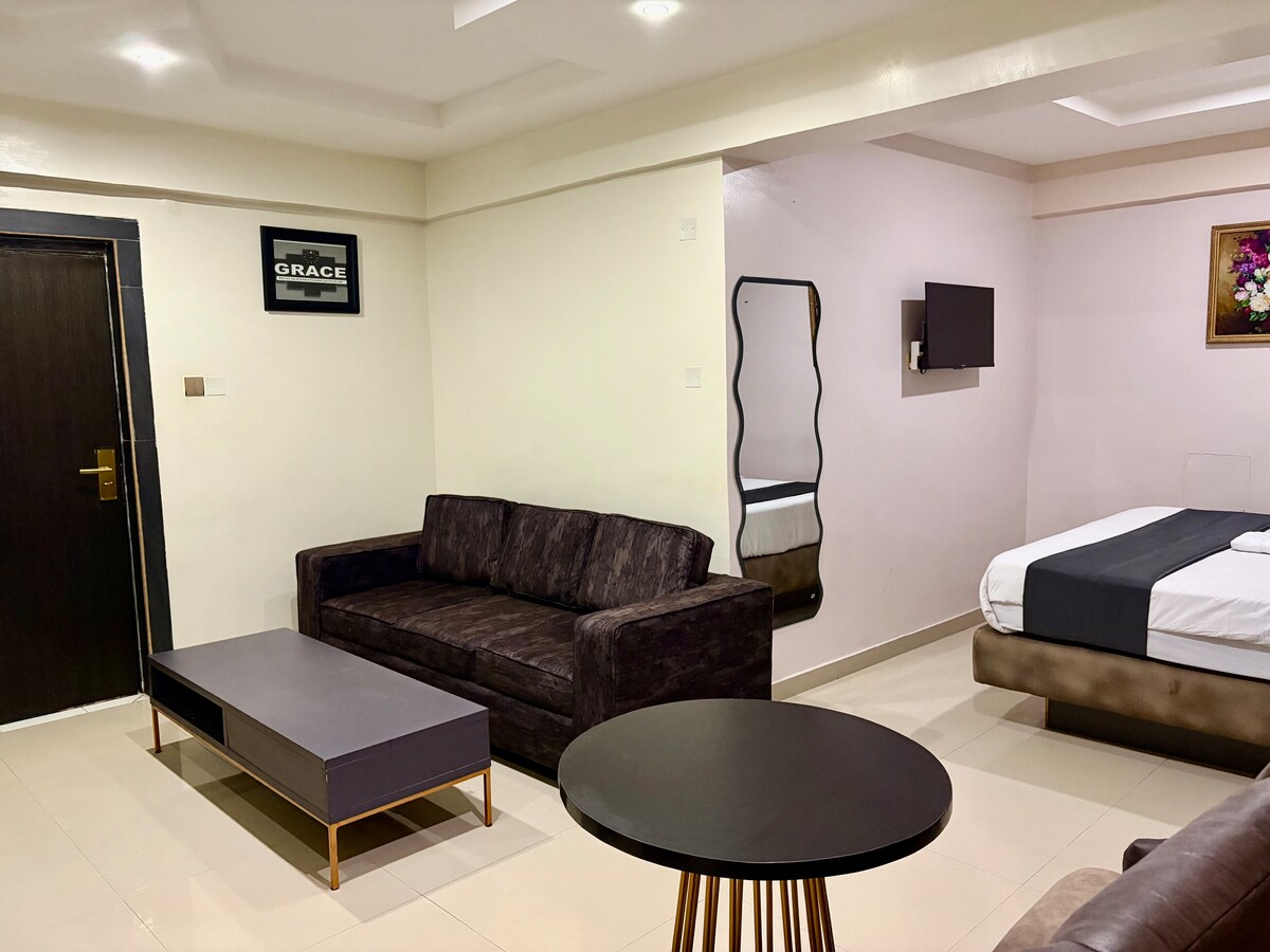 Welcome to Istanbul Room, a modern and comfortable private room designed for short and extended stays. The room features smart home technology, uninterrupted 24/7 electricity, fast Wi-Fi, and a comfortable bed suitable for two guests. Guests enjoy a private bathroom with shower, wall-mounted air-conditioner, mini fridge, flat-screen TV, smart door lock, wardrobe, and a mini table ideal for work or dining. Water supply and on-site security are available 24/7 for a safe and comfortable stay.