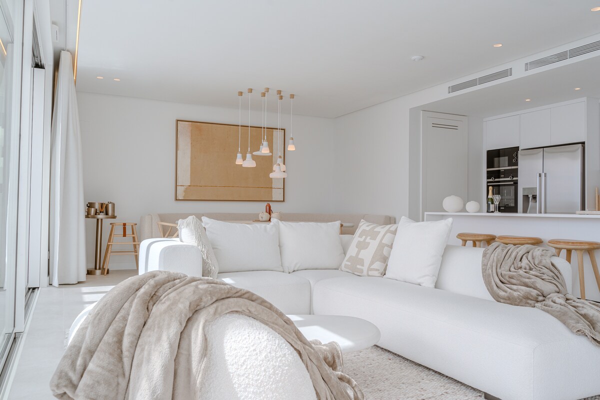 Our new, HIGHend apartment, just 8 minutes from Marbella's center. It offers sea views, creating a tranquil setting for your Spanish holiday. The apartment has Scandinavian elegance w/ clean lines, neutral tones, & minimalist design, creating a bright & sophisticated atmosphere for a memorable stay. Our guest can access the spa w/ heated pool, sauna & gym, all free of charge w/ fantastic sea views. The gym is well-equipped w/ top-line machines & the clubhouse adds a social element to the stay.