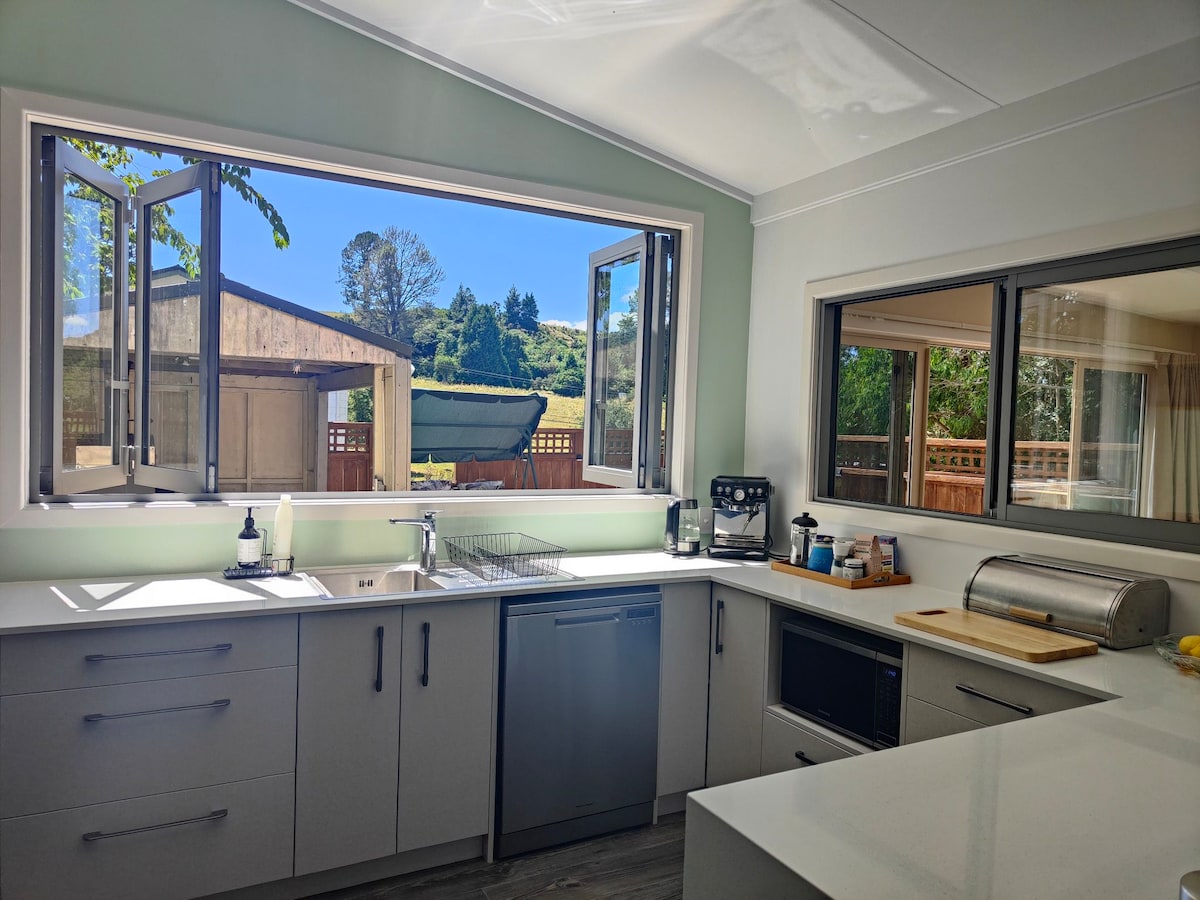 Este bach de diseño arquitectónico goza de un aspecto privado soleado, con impresionantes vistas al lago Rotoiti. Se ubica en una calle tranquila rodeada de árboles. Las características incluyen: pleno sol, terraza orientada al norte con barbacoa y vistas al lago, doble acristalamiento, bomba de calor, chimenea de leña, cocina completa con lavavajillas, horno grande, placas de gas y microondas. Trae tu bote para pescar truchas, viajes a las piscinas minerales calientes junto al lago y explorar el lago.