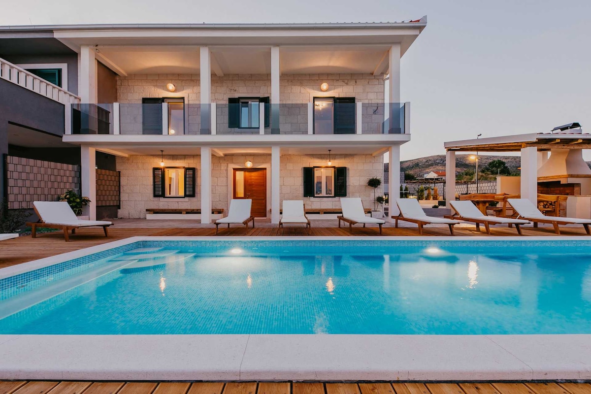 Esta moderna casa de nueva construcción es perfecta para aquellos que viajan en grupos y con familias. Villa dal' Mares tiene terrazas y balcones al aire libre perfectamente diseñados con vistas al mar, piscina climatizada con sistema de hidromasaje, cascada y fuente de agua, servicios infantiles,mini gimnasio. El espacio interior bellamente diseñado proporciona la privacidad y comodidad de esta villa. Disfruta del hermoso ambiente mediterráneo mientras pasas tus vacaciones de ensueño en nuestra hermosa villa y este encantador pueblo pesquero dálmata