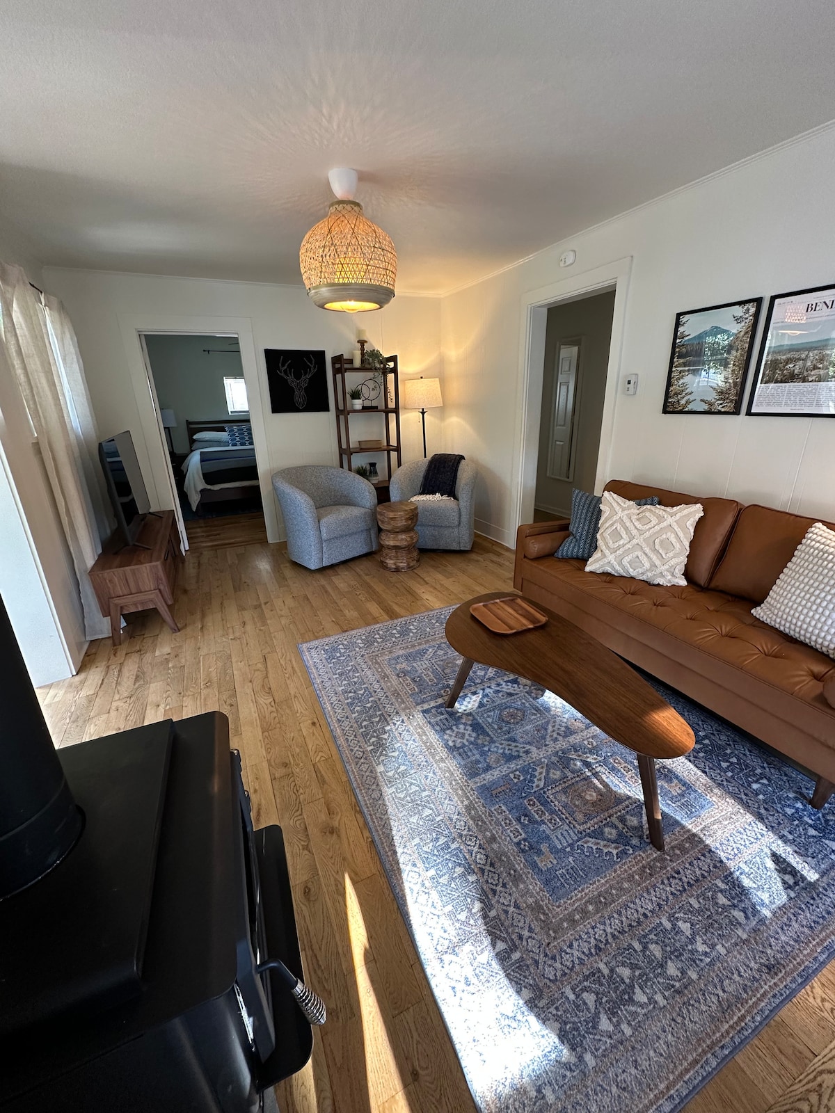 Enjoy our new custom-built ADU located a block away from the Deschutes River in a quiet residential neighborhood, just a 10-minute walk from downtown along the River Trail. In this modern, bright, and private space, you'll enjoy the luxuries of hardwood floors, waterfall countertops, a built-in workspace, heated tile bathroom floors, a 55" Smart TV, BBQ and fire pit, and endless hot water—plus off-street parking and EV charger. One king bed, one daybed with a trundle, and one queen sleeper sofa.
