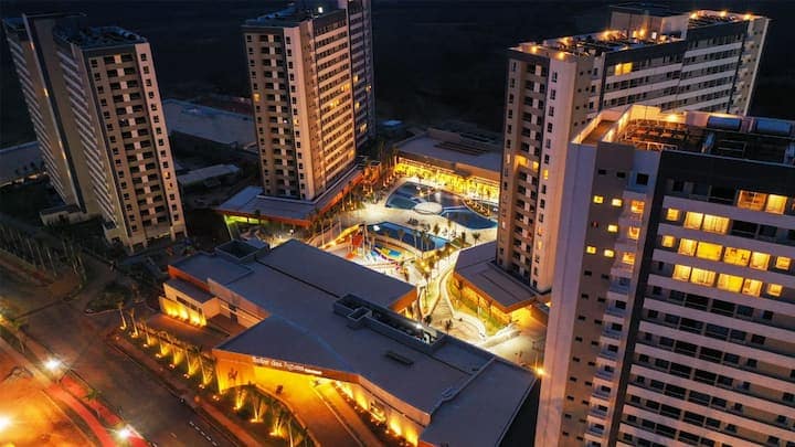**Disfruta de Solar das Águas Park Resort** es un espectacular centro vacacional con piscinas cubiertas y al aire libre, juguetes acuáticos, una biblioteca de juguetes y parque infantil. La ciudad ofrece apartamentos con aire acondicionado, TV inteligente y cocina americana. Los huéspedes disfrutan de una variedad de opciones gastronómicas, como un bar en la piscina y una pizzería, así como instalaciones como recepción las 24 horas y vestuario. Diversión con un gimnasio, minigolf y sala de cine, lo que hace que cada estancia sea una experiencia inolvidable. Un lugar elegante.