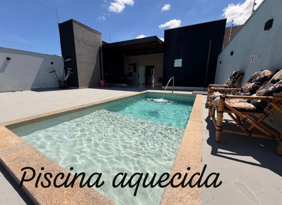 Tiene una piscina con calefacción eléctrica, bañera de hidromasaje y cascada, zona de barbacoa, 3 dormitorios, 2 de los cuales son privados independientes, todos con aire acondicionado y ventiladores de techo, baño de invitados, cocina equipada, sala de estar con TV por cable, Wi-Fi y garaje para 3 vehículos. Está muy bien ubicado, cerca de la panadería, carnicería, pastelería, hamburguesa y esfirraria; a 500 metros del supermercado y de 7 a 10 minutos de los parques, ruta de fácil acceso.