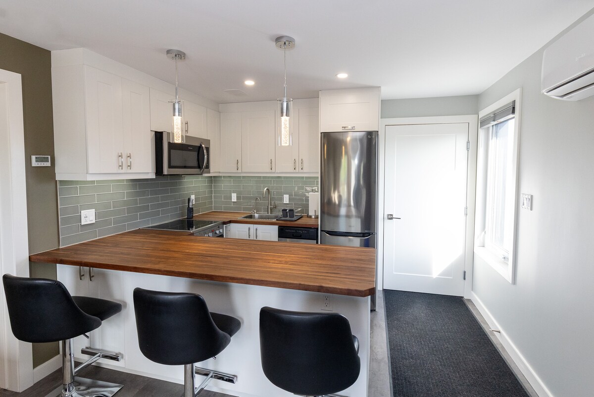 Este alojamiento único tiene personalidad propia. ¡A pocos pasos de la facultad de derecho! Esta unidad superior recién reformada con todos los muebles nuevos cuenta con un interior de lujo brillante. 1 dormitorio con rincón de yoga y/o meditación. Impresionante baño completo con bañera de hidromasaje. Sala de estar y comedor amplios y luminosos. Cocina totalmente equipada con capacidad para 4 personas. Disfruta del ambiente de tu chimenea eléctrica en cualquier estación. Disfruta de un baño de burbujas en la bañera de hidromasaje. ¡Reserva hoy mismo!