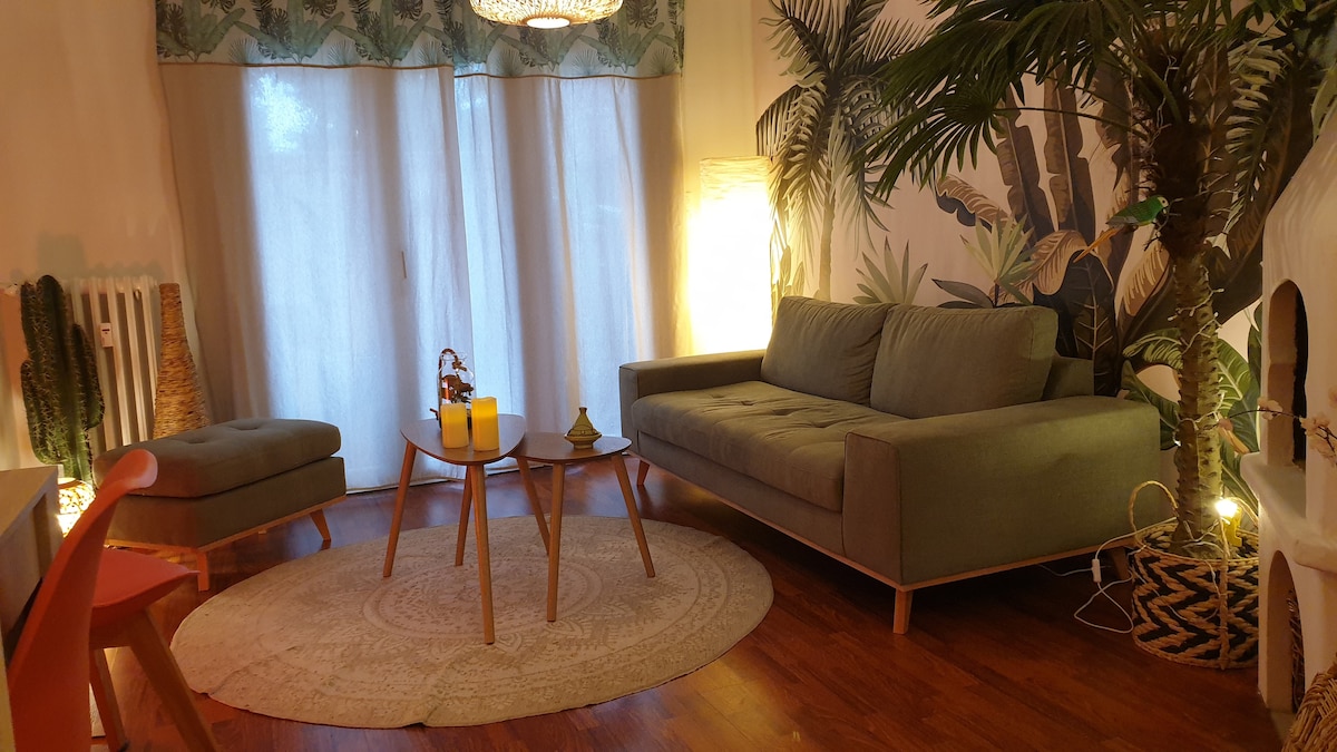 Encantador T3, decoración original cambio de escenario garantizado, jardín, jacuzzi climatizado , plancha, playa frente a 80 m, puerto de Sanary 400 m, estacionamiento privado, todas las tiendas a pie. 2 dormitorios, ropa de cama cómoda. Aire acondicionado. Baño con ducha italiana y bañera. Cuna, silla alta. Ropa de cama opcional: sábanas y toallas 10€/persona. Paquete de limpieza 60€ obligatorio. Mercados diarios y semanales a pie. Restaurantes, cines y muchas actividades en las cercanías. Internet wifi. 2 televisores.