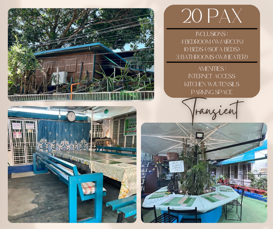 Blk 7 Lot 19-21 Santa Monica Subd Matain Subic Zambales. Nuestra propiedad totalmente amueblada puede alojar hasta 38 personas (PRINCIPAL HOUSE-16, TRANSIENT-12 Y TREEHOUSE-8). * Las habitaciones son ideales para 2-12 personas. Se pueden reservar varias habitaciones. * Hay un precio mínimo por habitación. El huésped adicional se cobrará como tarifa adicional. * Aceptamos alquileres diarios, semanales y mensuales y ofrecemos descuentos razonables. Lee toda la información proporcionada. Si tienes alguna pregunta, puedes ponerte en contacto con el anfitrión.
