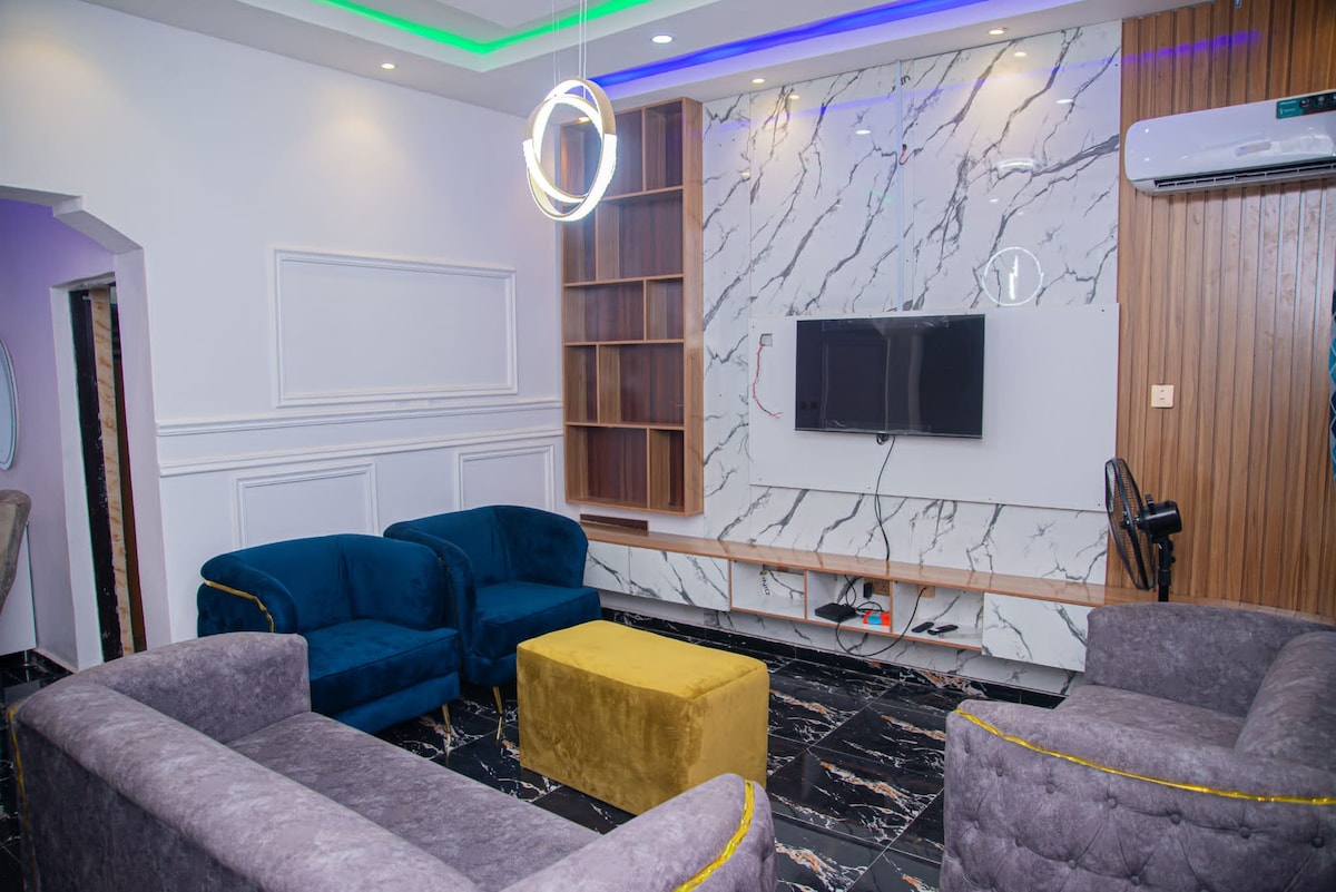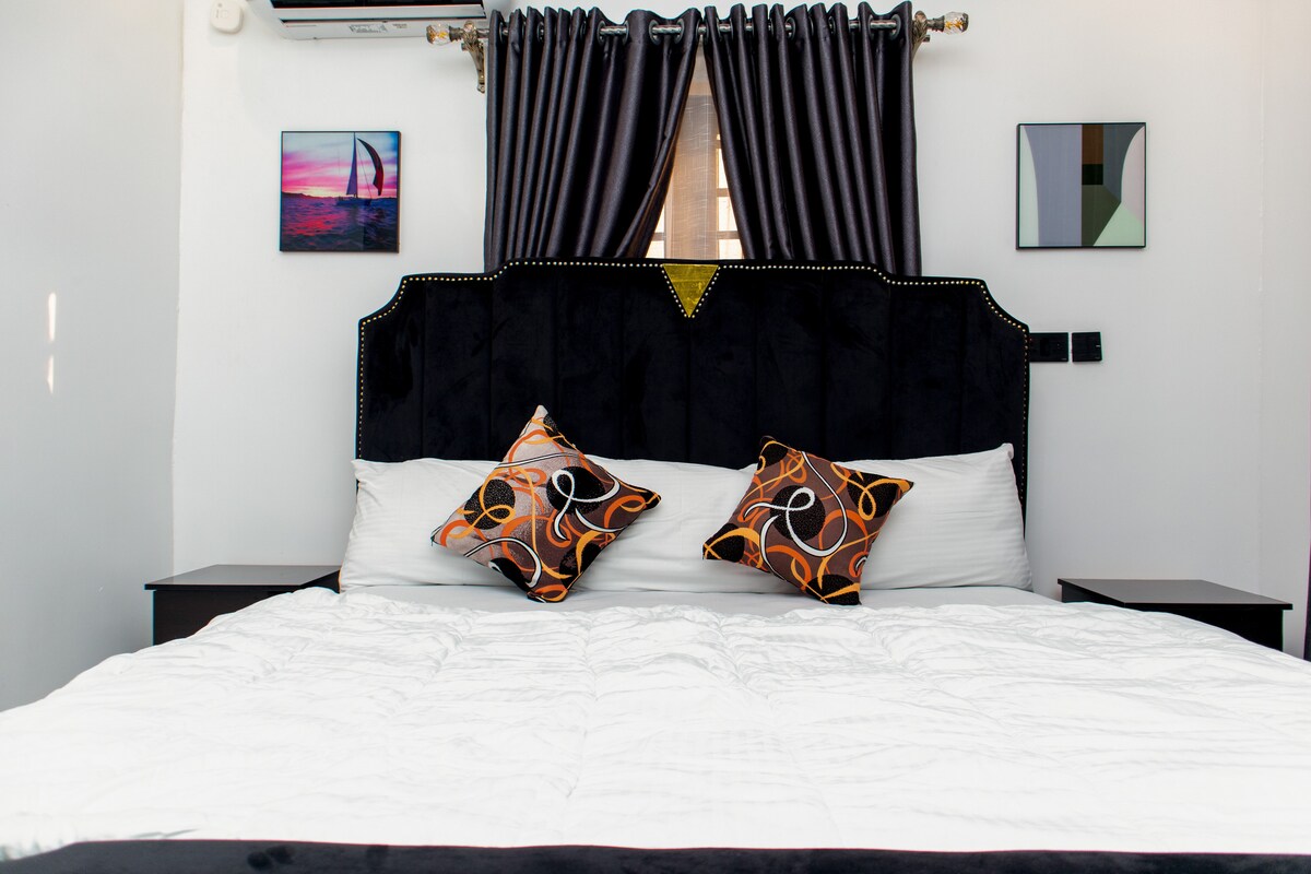 ¡Escápate al tranquilo oasis de Olumide en el corazón de la ciudad! Nuestro apartamento de lujo de 3 dormitorios con transformador de 33Kva garantiza un suministro de energía ininterrumpido. Relájate con estilo con nuestros lujosos refugios tamaño king y dos tamaño queen, cada uno con baño en suite, para la máxima comodidad. Mantente conectado con Wi-Fi rápido, respaldado por un generador de reserva y Netflix con nuestros televisores inteligentes de 65 y 42 pulgadas, cocina totalmente equipada y balcones privados. Perfecto para estancias largas, familias y grupos. Reserva ahora y relájate con estilo