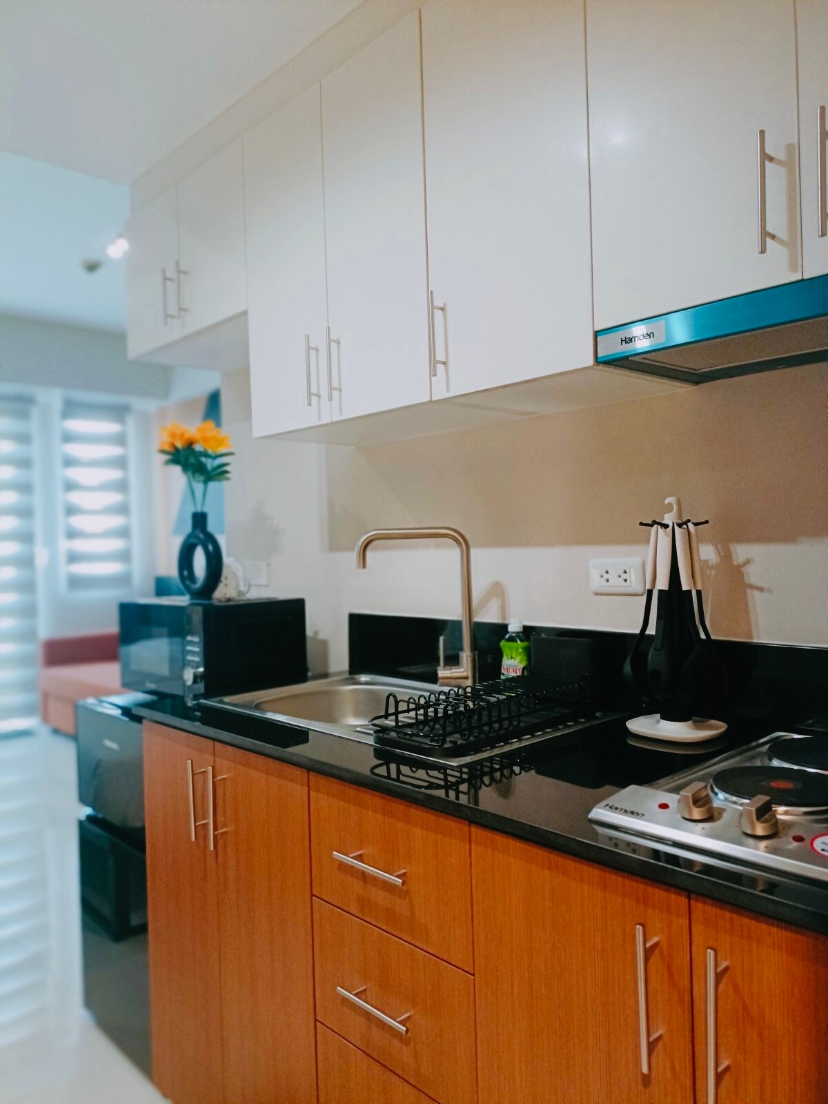 NO PIERDAS UN VUELO: situado a 5 minutos de la Terminal 3 del Aeropuerto Internacional Ninoy Aquino (Naia), esta unidad de condominio de 32 metros cuadrados cuenta con un encanto único y su ubicación perfecta. Recientemente remodelado y amueblado con buen gusto a la verdadera moda escandinava, siéntete como en casa mientras disfrutas de acceso completo a los servicios del condominio, incluida la piscina. El alojamiento tiene wifi, cable de 85 canales y cocina totalmente equipada.