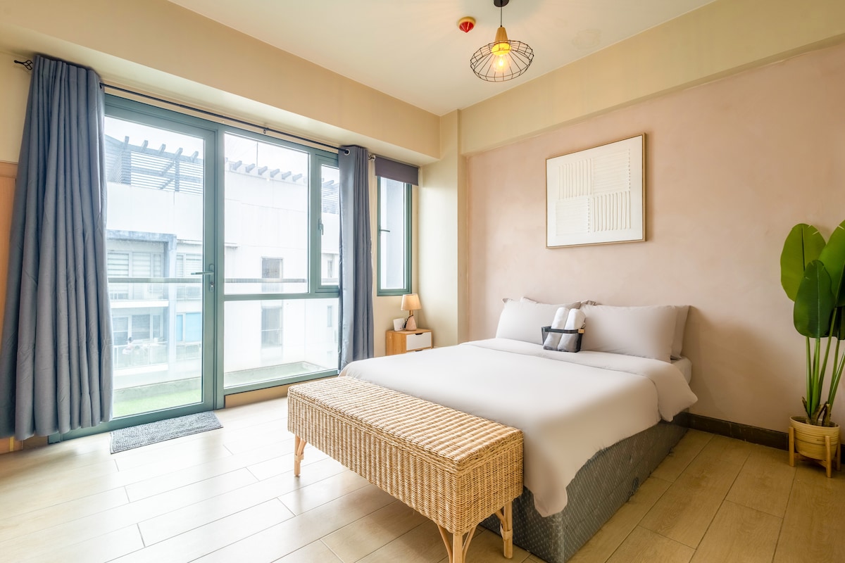 Este apartamento tipo estudio se encuentra enfrente de la Terminal 3 de NAIA en Manila. Es ideal para viajeros, estancias cortas y vacaciones. Si tienes equipaje ligero, se puede llegar a la terminal del aeropuerto cruzando la pasarela peatonal Runway Manila en 5-8 minutos. El espacio: • Una cama tamaño queen y 1 colchón adicional. • Cocina con hervidor eléctrico, estufa, microondas y nevera. • Wifi y TV inteligente de 65 pulgadas. • Balcón con vista al aeropuerto y comedor. Servicios: • Piscina (excepto los lunes). • Gimnasio • Zona de juegos Llegada autónoma