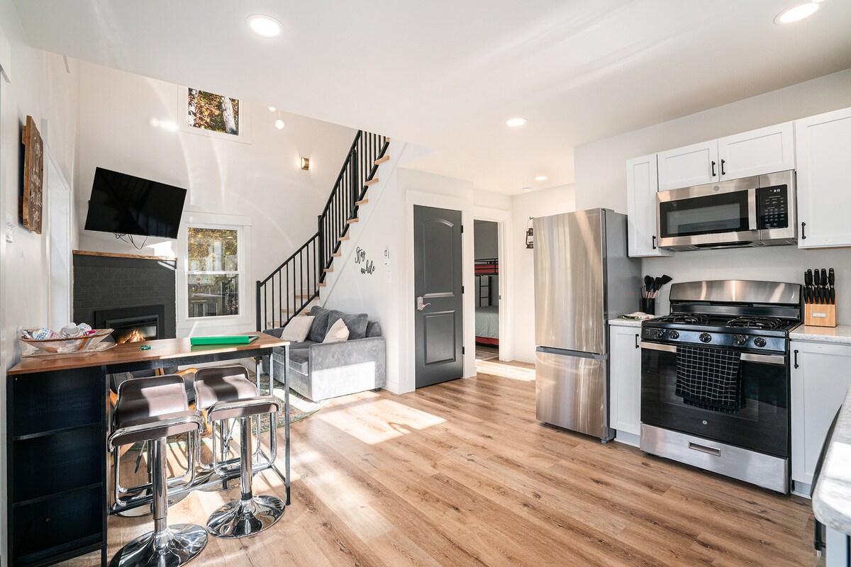 Relájate y desconecta en este alojamiento tranquilo y elegante. Ubicada entre los árboles, ofrece una escapada tranquila del caos de la vida, lo que te permite recargar energías y renovarte. La residencia principal se encuentra a unos 400 pies de la cabaña. La cabaña está aislada y, sin embargo, cerca de atracciones locales, restaurantes, ciclismo y senderos naturales. La cabaña tiene un total de 420 pies cuadrados de espacio habitable con 280 pies cuadrados en la planta baja y un dormitorio loft de 140 pies cuadrados.