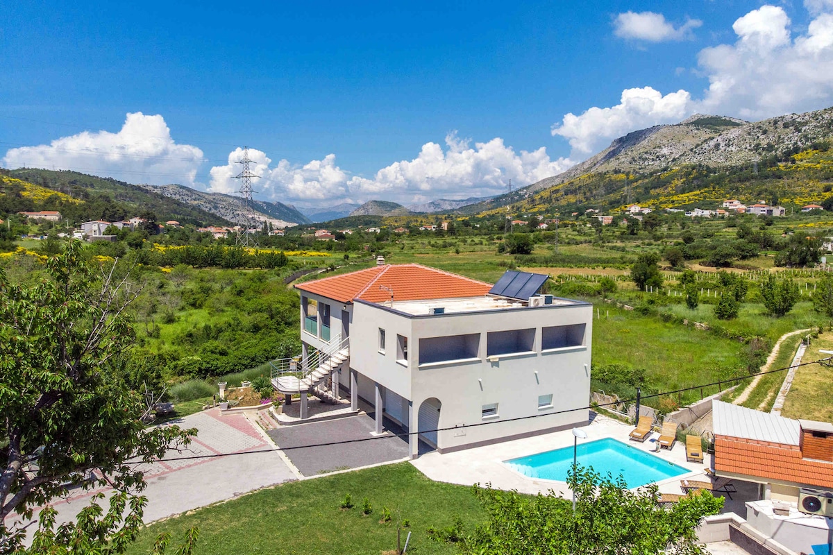 Villa Nacle es una moderna villa privada con piscina climatizada ubicada en el tranquilo pueblo de Naklice, cerca de Omiš y a 7 km de la costa del Adriático. Diseñada para un máximo de 6 huéspedes, la villa ofrece tres dormitorios con aire acondicionado, amplias áreas de estar y una hermosa terraza al aire libre con vistas a la montaña. Cerca de playas, rafting y tirolina en el río Cetina, es ideal para familias y parejas que buscan comodidad, privacidad y unas vacaciones dálmatas activas.