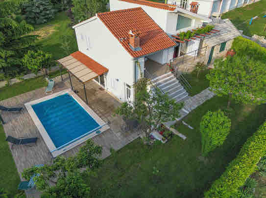 Property is located in Dalmatian hinterland just 3km away from a small town of Šestanovac. It is a spacious private rural olive tree ranch (4500m2) with a vacation house with a 9,5m long heated pool. House is designed to accommodate up to 6 persons, and equipped with spacious and comfortable living/dining space, two large bedrooms, big kitchen and two luxury bathrooms . The space around the house is big enough to enjoy many different outdoor activities .There is also a free parking space.