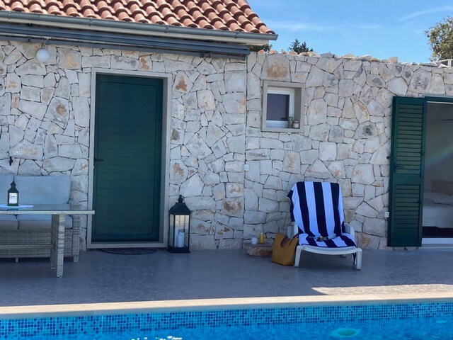 Naša kamena kuća s bazenom se nalazi na prekrasnom, zelenom otoku Braču, u blizini etno-eco sela Dol. Okružena je stablima maslina, mirno je, puno prostora za djecu, kao i kućne ljubimce. U selu Dol, koje je udaljeno 10 min.hoda, nalaze se i dva restorana. Udaljeno 3 km se nalazi mjesto Postira, sa više prodavaonica, hotela, restorana, plaža, rekreacija za djecu. Gosti mogu uživati u šetnjema prirodom, grilanju, druženju.