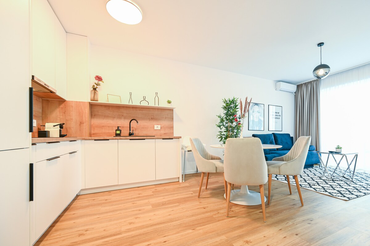 Disfruta de este elegante y espacioso ático a solo 10 minutos del centro de la ciudad y a unos pasos del río. Con una elegante sala de estar abierta, cocina totalmente equipada, dormitorio sereno, baño elegante, vestidor y una terraza soleada, este apartamento ofrece comodidad y lujo. Ideal para parejas o trabajadores remotos que buscan paz, diseño y proximidad a las principales atracciones de Oradea.