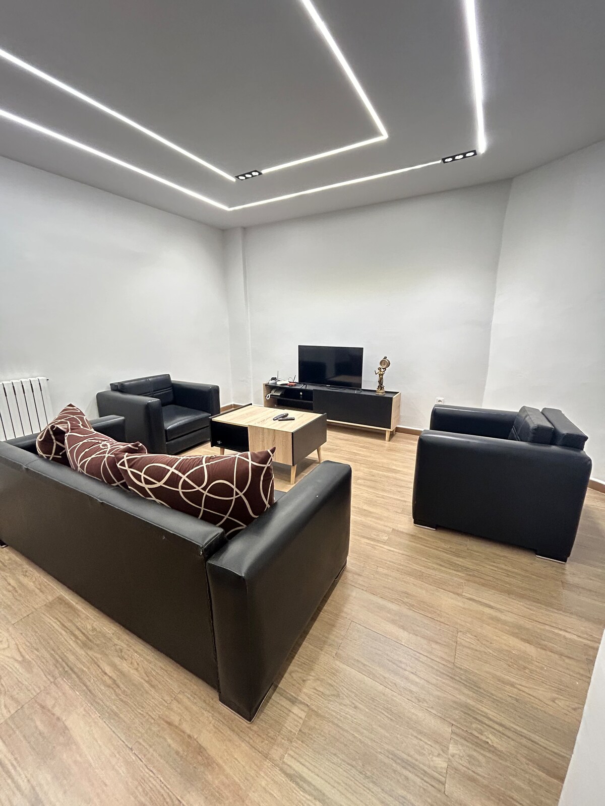 • 1 Habitación con Cama doble - cama King size 200 cm * 200 cm • 2 televisores inteligentes LG con Netflix • 1 colchón de 1 plaza • Sala de estar - Sillón en L • Comedor • Cocina totalmente equipada • Balcón con vistas al mar • Gimnasio en la residencia • Cuna para bebé (bajo petición) La residencia se encuentra en pleno corazón de Orán frente al paseo marítimo, a 9 km de la fortaleza de Santa Cruz y a 15 km del aeropuerto Ahmed Ben Bella.
