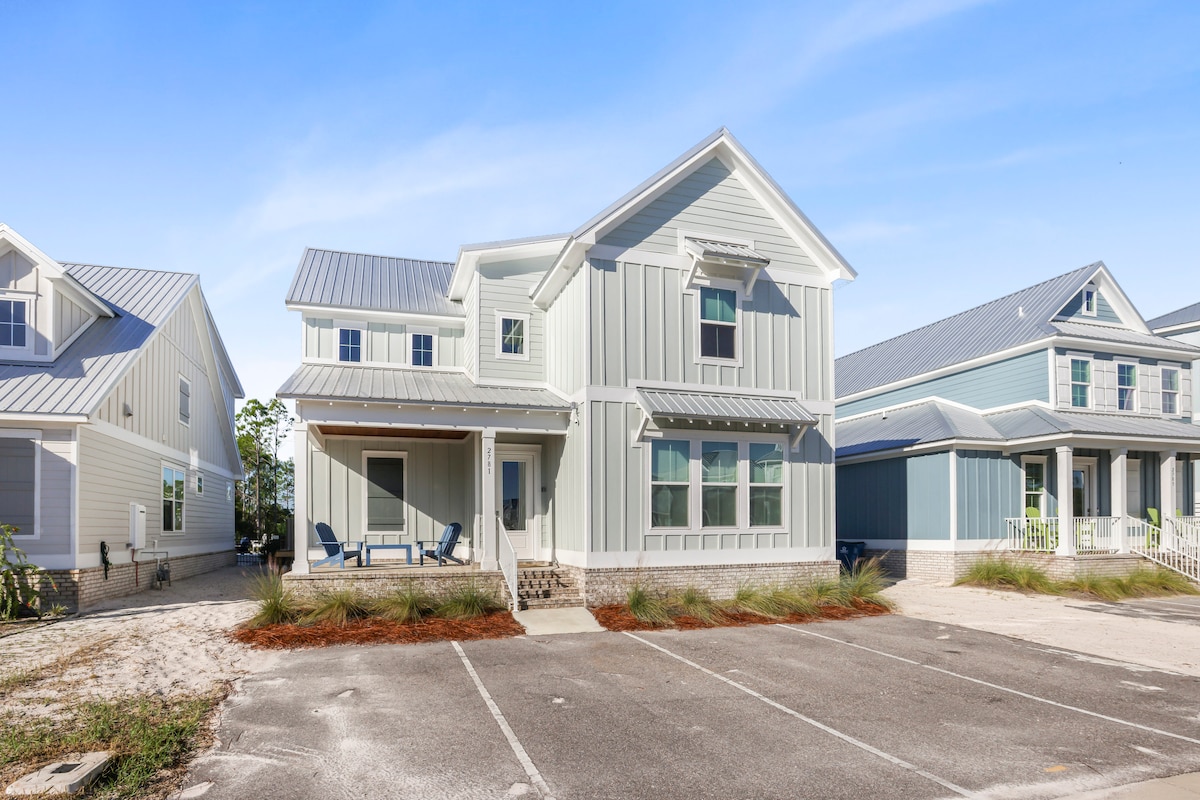 El aire fresco y salado y las amplias vistas del golfo de México son el telón de fondo de este exclusivo alquiler vacacional de 5 dormitorios y 4,5 baños en Perdido Beach. Ubicada en una playa de arena, esta casa restaurada de 1928 cuenta con un interior de buen gusto, cocina completa y un porche envolvente. Pasa tiempo relajándote en los cómodos columpios de la cama leyendo libros, o saca un kayak o la tabla de remo para dar una vuelta, justo a tiempo para disfrutar de una puesta de sol tranquila. ¡Te esperan interminables aventuras bajo el sol en este oasis de playa!