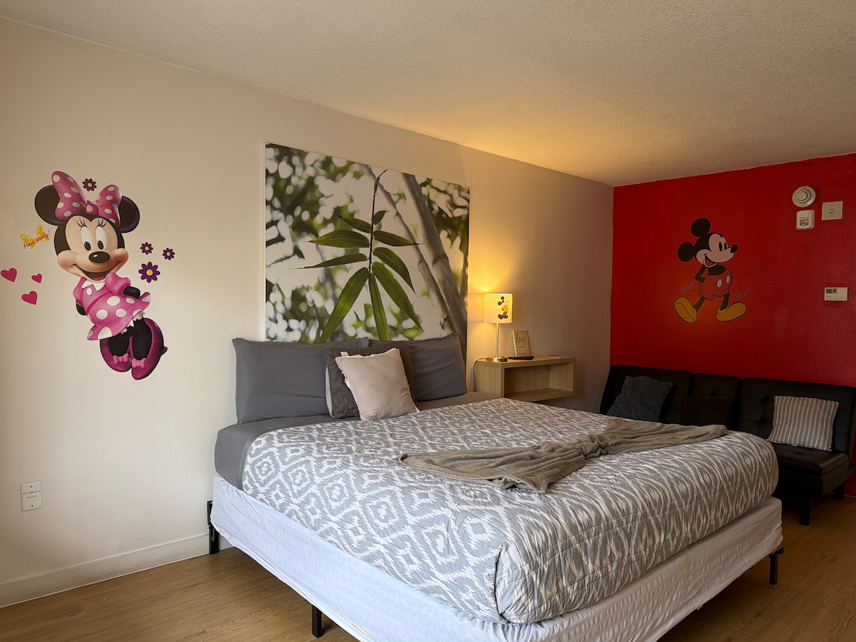 Quédate en nuestra casa a pocos minutos de Disney World y a pocos pasos de restaurantes y tiendas. Ubicado justo al lado de LA AUTOPISTA 192, hay muchos restaurantes y tiendas cerca. Disney World Resort está a poco más de 5 kilómetros de distancia, Universal Studios está a unos 13 kilómetros. Nuestro alojamiento cuenta con 3 dormitorios y pueden dormir hasta 6 huéspedes: 1 cama tamaño king (dormitorio principal) -1 cuna plegable en el armario 1 cama Queen (decoración de Marvels Avenger) 2 camas individuales (decoración de Mickey Mouse) -1 cuna portátil de tamaño completo en el armario