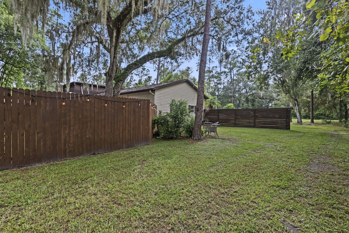 Esta hermosa casa de estilo rancho de 2 dormitorios y 1 baño está convenientemente ubicada a 3,5 millas del Aeropuerto Internacional de Sanford y del Complejo Deportivo Boombah. El paisaje y el patio trasero son acogedores, donde podrás refrescarte en la piscina de estilo rústico o hacer una parrilla y relajarte en el patio. El plano de planta abierta crea una sensación espaciosa y cada acabado se seleccionó con cuidado. Para una experiencia de glamping, echa un vistazo a nuestro otro anuncio: https://abnb.me/z3XrgOSPNFb