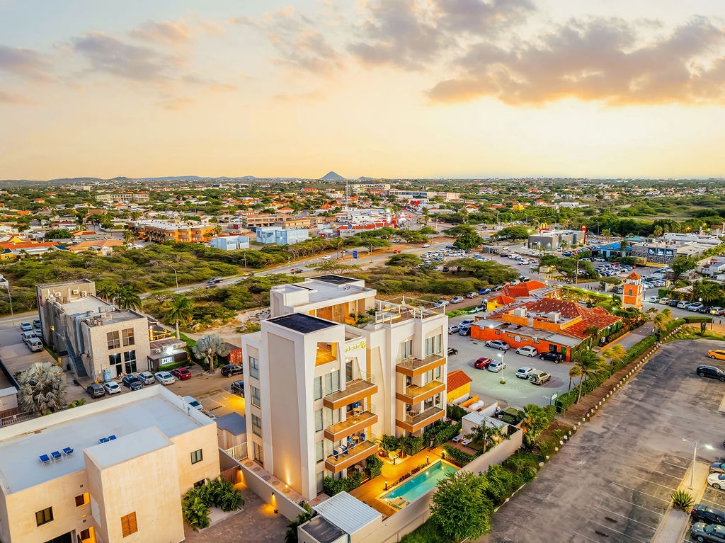 Descubre el mejor refugio vacacional en nuestro desarrollo de apartamentos de vanguardia, que combina el ambiente tranquilo de la isla con la vida urbana moderna y seguridad las 24 horas, los 7 días de la semana para tu tranquilidad. Disfruta de impresionantes vistas al mar, al puerto y al atardecer desde nuestro apartamento totalmente equipado, estratégicamente ubicado en el centro de Oranjestad, frente al icónico Hotel Renaissance y cerca de emocionantes atracciones. A solo 5 minutos en coche de las famosas playas Eagle Beach y Surfside Beach, y a solo 10 minutos de la vibrante Palm Beach.