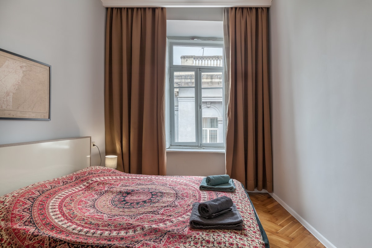 El departamento está ubicado en el centro del distrito histórico, en una calle antigua muy hermosa. Te alojarás en un patio georgiano tranquilo y típico y podrás disfrutar de las vistas desde el balcón. La casa es antigua pero totalmente renovada y diseñada por mí. El departamento es luminoso y cómodo, con un baño completo (7 metros cuadrados). El departamento ofrece check-in sin restricción de horario. Recibirás instrucciones detalladas el día antes de tu llegada, para que el check-in sea fácil y sin problemas. Espero que disfrutes de la estadía.