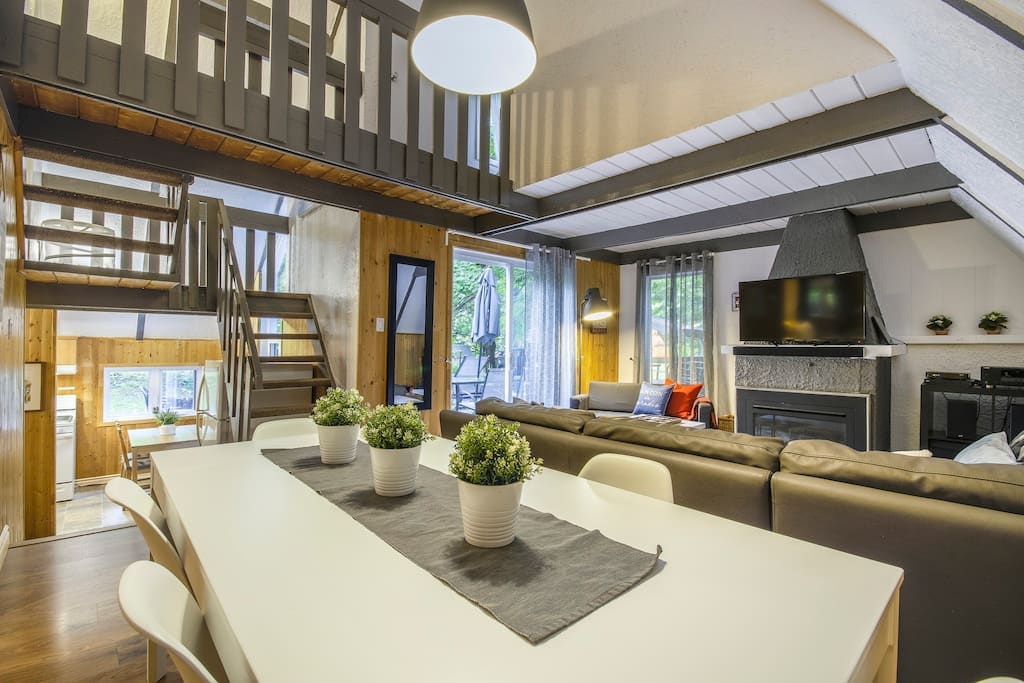 Ubicada a 20 minutos de las colinas del Mont Orford, esta casa de campo tiene todo para encantarte. Encontrarás una sala de estar con luz natural, un acogedor comedor, cocina totalmente equipada, dos dormitorios cerrados y un entresuelo de vidrio con sofá cama. Un patio (con barbacoa), una terraza enorme y el sótano también están a tu disposición. El chalet es ecológico. ¡Puedes disfrutarlo con total tranquilidad!