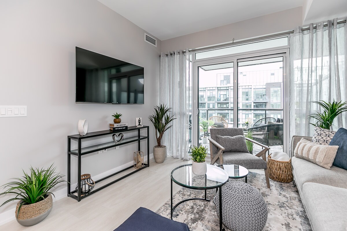 Escape to our spacious, furnished, 1 bedroom condo with a walkout balcony located in Friday Harbour All Seasons Resort community. Enjoy this season with access to walking trails, boardwalk festivities, live music, events and weekend markets on the boardwalk. Queen bed + pullout Queen sofa sleeps 4. Two Smart TVs, High Speed WiFi. Relax on furnished balcony overlooking our private pool, courtyard & beautiful sunset. 1 Free Parking, Electric BBQ, In-Suite laundry.