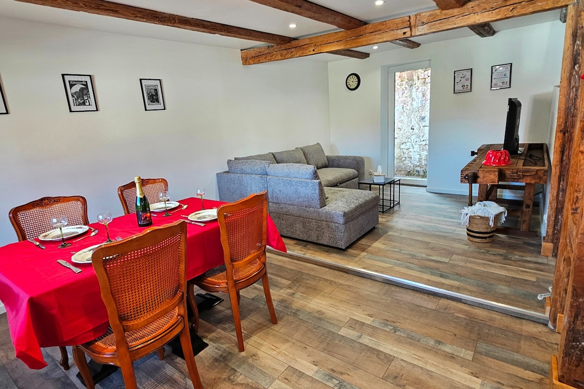 Venga a descubrir este encantador apartamento, amplio y totalmente renovado, con vigas a la vista y vistas al viñedo. A dos pasos del centro de la ciudad y de las tiendas y con una ubicación ideal en la Ruta del Vino de Alsacia, a 20 minutos de Colmar y Mulhouse, y a 30 minutos de la estación de esquí de Markstein. A su disposición: café y té, wifi, Netflix,... Las camas estarán hechas a su llegada y se proporcionan toallas.
