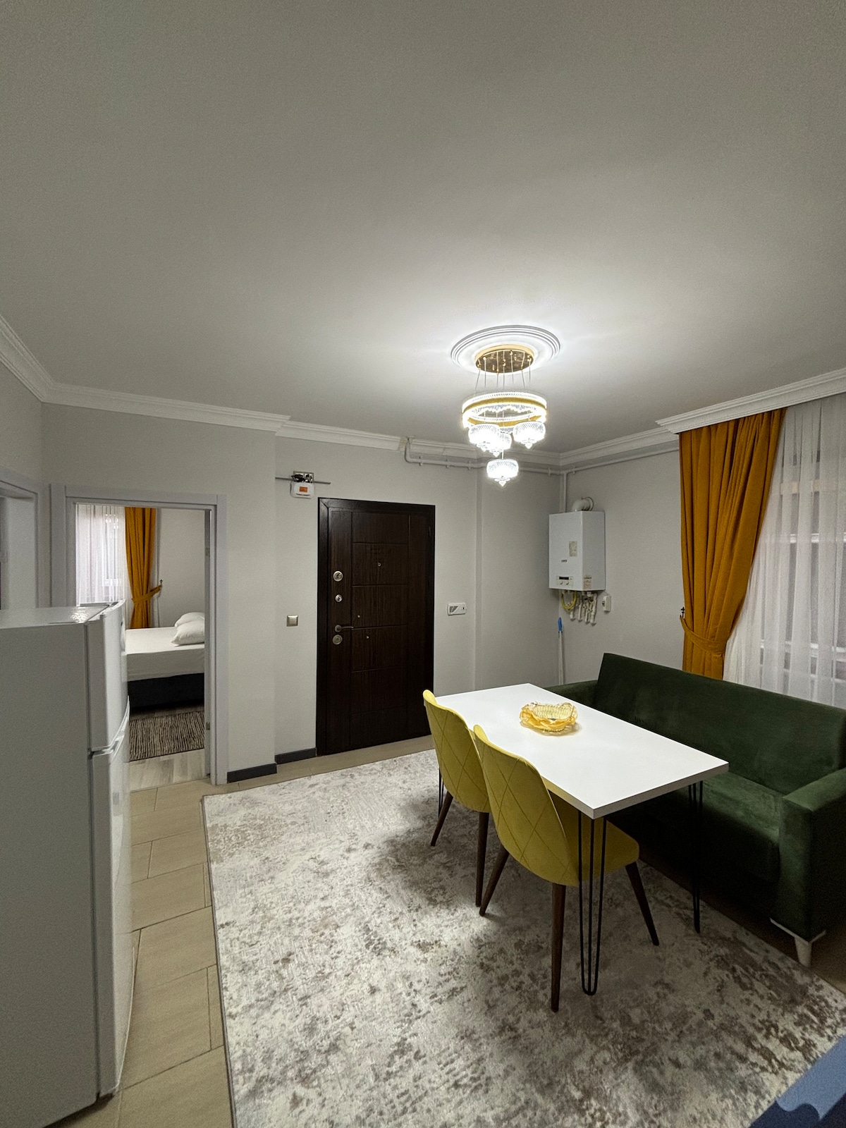 Este apartamento nuevo y limpio, que está en una ubicación céntrica donde puedes quedarte tranquilamente con tu familia con todos sus artículos, está al servicio de nuestros huéspedes. Nota: Nuestros apartamentos son adecuados para la familia, Es necesario ser una familia o un requisito matrimonial. No se aceptan mujeres solteras ni hombres solteros. Se aceptan siempre que sean grupos de amigos (al menos tres hombres o tres mujeres).