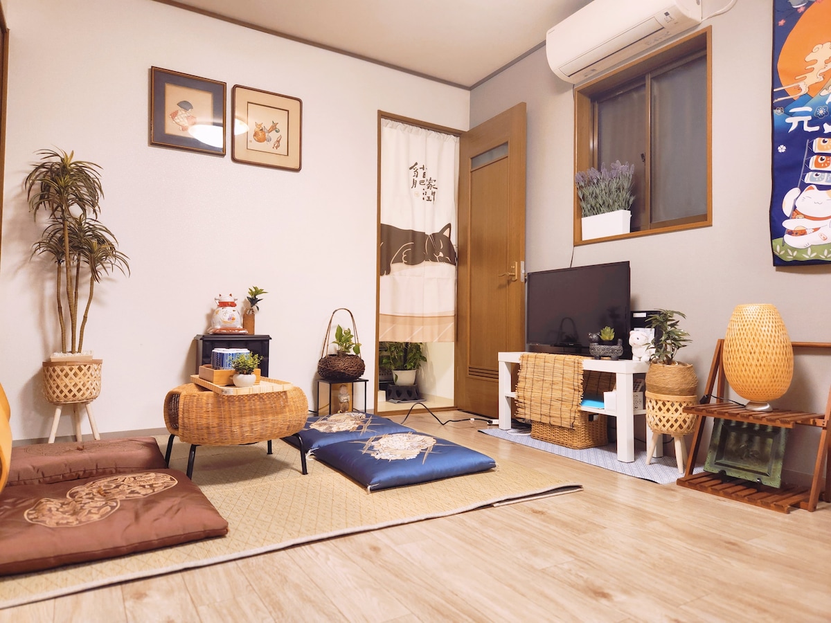 Relájate con toda la familia en este alojamiento tranquilo La casa anexa de Orikuninn es un B&B operado por Shinshoku Co., Ltd. Construida en la era Showa, la casa fue renovada por el propietario en agosto de 2025. Esta casa es tranquila en medio del bullicio, lo que te permite lavar tu mente y sentir unas vacaciones relajantes en un rincón tranquilo. Disfruta del ocio en Osaka, empápate de historia y cultura tradicional, y vive una experiencia inmersiva alojándote con una familia japonesa. ✅ El alojamiento será totalmente tuyo durante tu estadía, solo para una familia, Puedes compartir un momento agradable con tus familiares y amigos. ✅ Todo el edificio tiene dos pisos; en el segundo piso hay un baño de estilo occidental, una cama tamaño queen de 1,5 m y dos camas de una plaza de 1,1 m. ✅ Perfecto para una familia o amigos.Dos dormitorios y una sala de estar pueden alojar entre 5 y 6 personas. Con 5 personas se está más cómodo; con 6 personas se está un poco apretado. Puedes ponerte el kimono japonés que te proporciono para que disfrutes de la cultura japonesa. ✅ La sala de estar del primer piso es de estilo japonés. Esta zona se puede utilizar para dos fines: puede disfrutar de los juegos de té japoneses o puede añadir dos futones. ✅ Hay una cocina, ducha, lavabo e inodoro en el primer piso. ✅ Se permite fumar en la entrada del primer piso y en el balcón del segundo piso. 🚬 ✅ El edificio principal de Olympos y el anexo están muy cerca el uno del otro, a entre 3 y 4 minutos a pie. Si son aproximadamente 13 personas, pueden alojarse tanto en el edificio principal como en el anexo. ✅ Orijun Benkan ha recibido excelentes comentarios de los huéspedes, y su edificio anexo también es bastante bueno. ¡Te damos la bienvenida a nuestro alojamiento! 🌈 Acceso directo al bed and breakfast desde el aeropuerto sin traslados. Desde la estación de Shin-Imamiya, el bed and breakfast se encuentra a 11 minutos a pie. Desde la estación de Hanazonocho, Umeda, Namba, Shinsaibashi y Nippombashi están a 4 minutos a pie.
