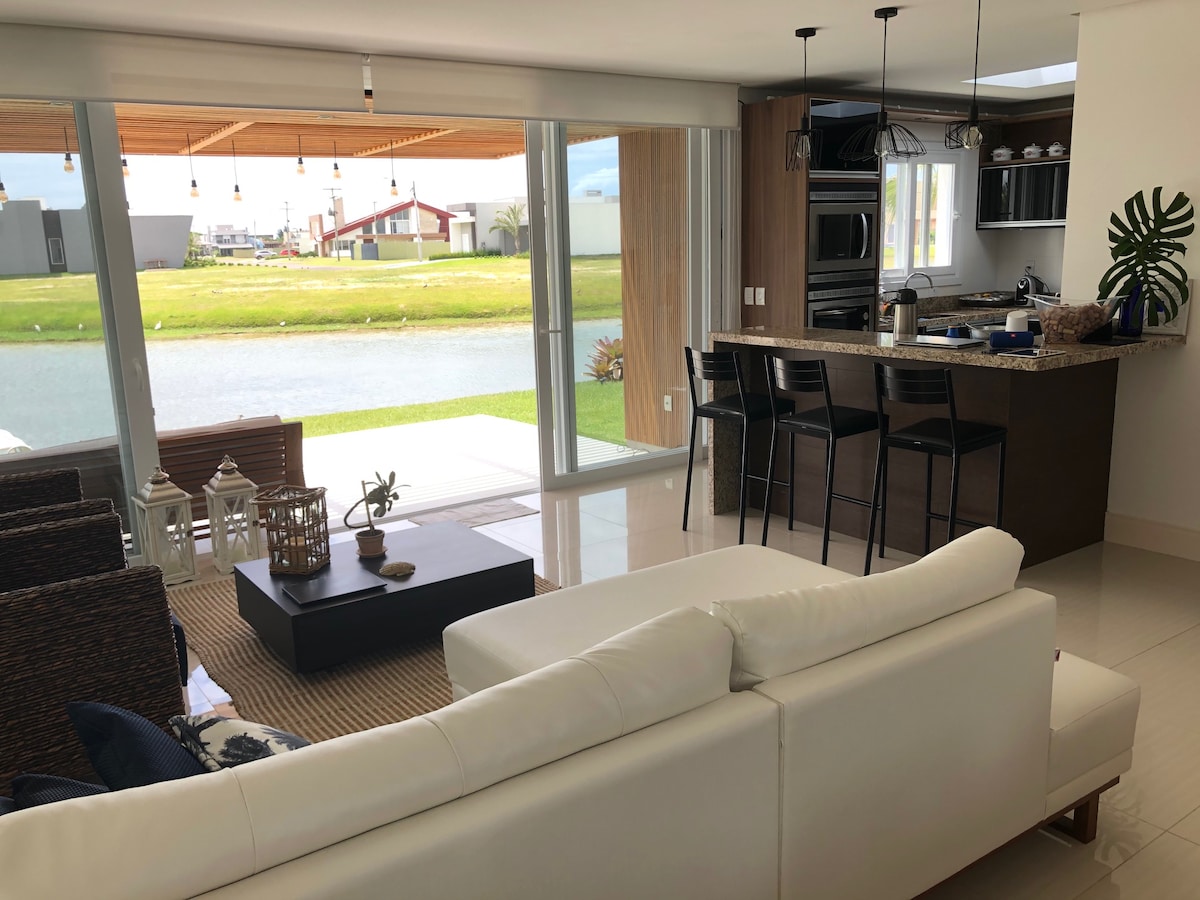 Aceitamos Pets! Divirta-se nessa Casa super equipada, SPA Aquecido e Privado no quintal, Ar condicionados, Wifi, Churrasqueira! Apenas 3 minutos de carro da beira da praia! O imóvel e o condomínio contam com: * Piscina com borda infinita e prainha * Deck no lago* Mercado * Sala de jogos * Academia * Espaço kids * Lago ornamental * Trapiche e pergolado * Beach tênnis